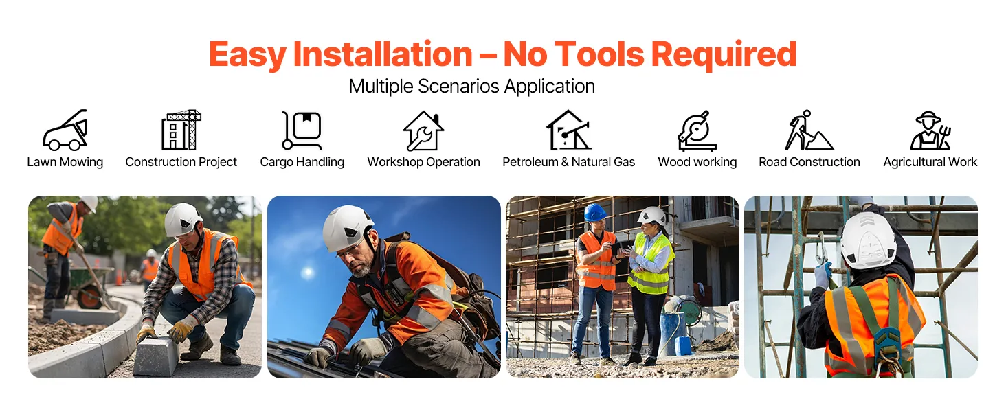 Work Great Across Job Sites: The construction helmet for adults fits construction sites, woodworking shops, mechanical work, forestry, manufacturing, and elevated tasks. It is suitable for most jobs that call for reliable headgear
