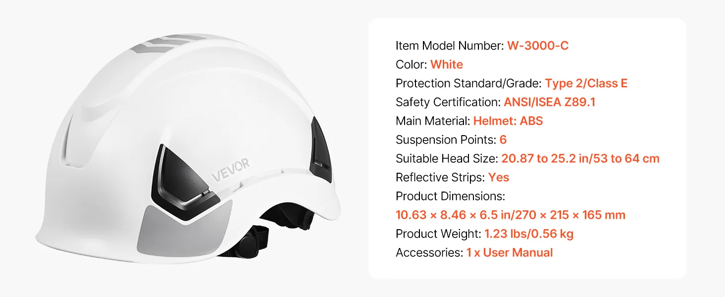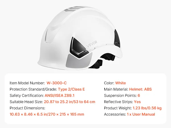 Authoritative Certification: The hard hat complies with ANSI/ISEA Z89.1 Type 2, Class E standards. Rigorously tested to help ensure consistent quality and performance in industrial work settings