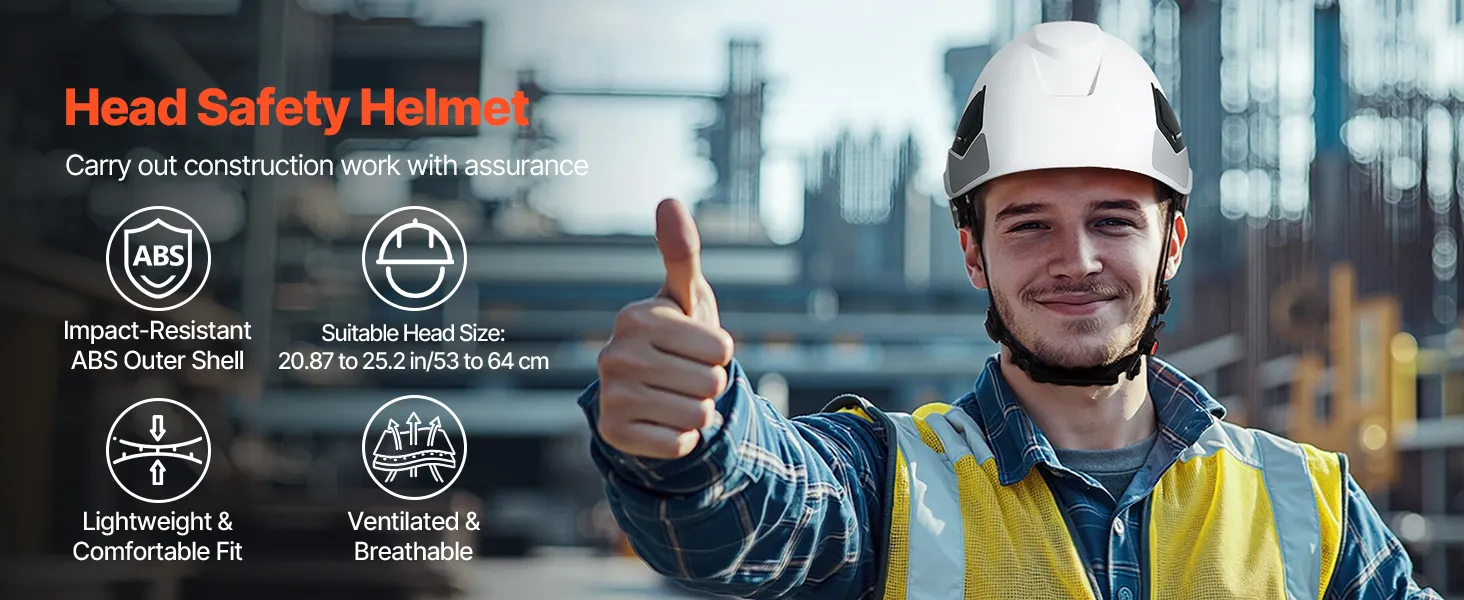 VEVOR Construction Safety Helmet, ANSI/ISEA Z89.1 Approved ABS Safety Hard Hat with 6-Point Ratchet Suspension, Adjustable Vented Hardhat for Men Women Adults, for Outdoor Indoor Industrial Workwear