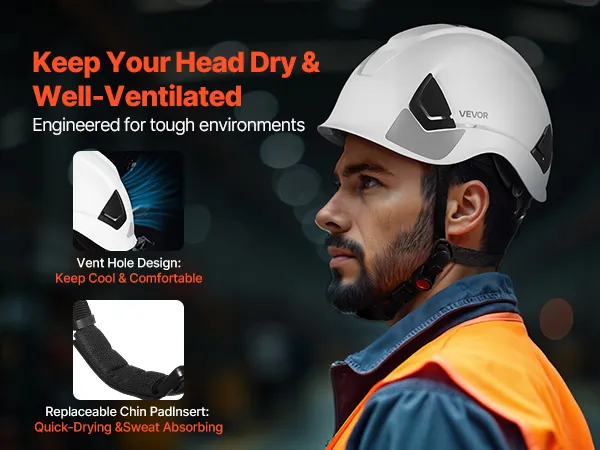This helmet’s built-in vents improve air circulation, helping you stay cool. Paired with a quick-dry chin cushion that absorbs sweat, our safety helmet hard hat ensures a breathable and dry fit in any weather.