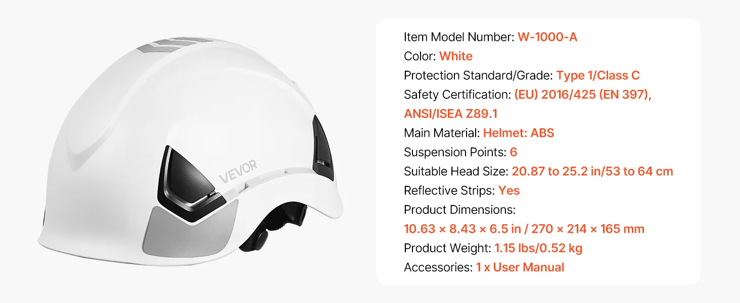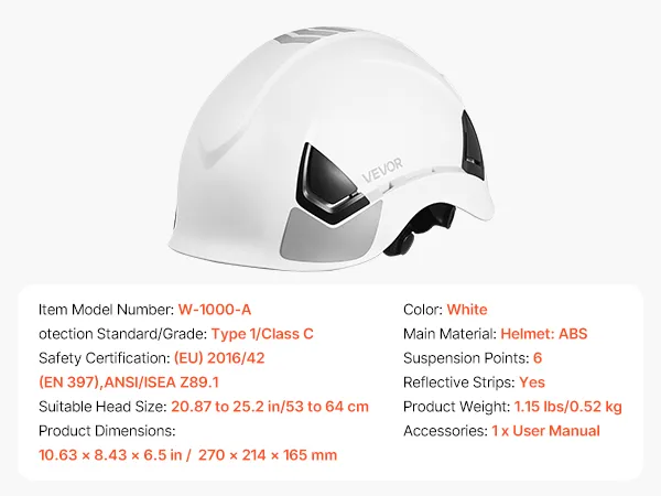 Authoritative Certification: Meets ANSI/ISEA Z89.1 and CE EN 397 (EU 2016/425) testing standards. This Type 1 Class C hard hat has passed strict testing to offer dependable performance in demanding work environments