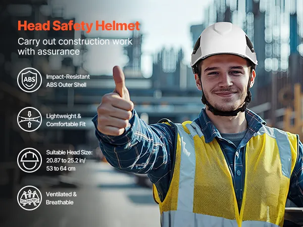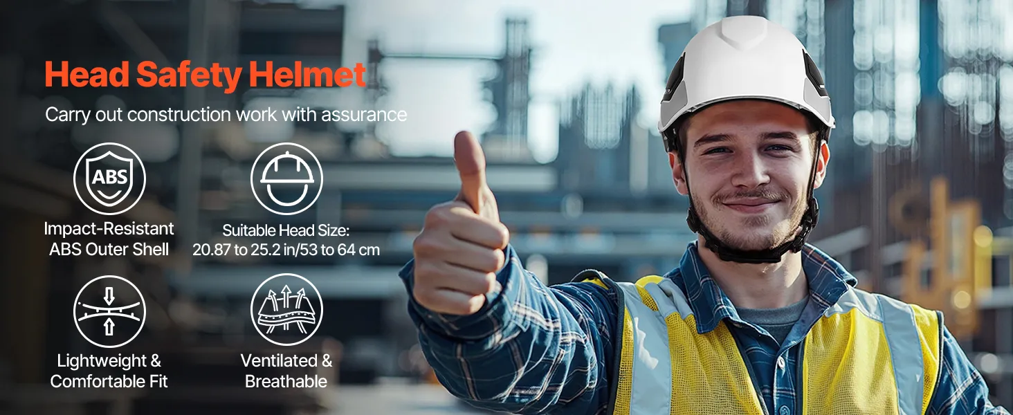 VEVOR Safety Helmet, ANSI/ISEA Z89.1 Approved ABS Safety Hard Hat with 6-Point Ratchet Suspension, Adjustable Vented Hardhat for Men Women Adults, for Outdoor Indoor Industrial Construction Workwear
