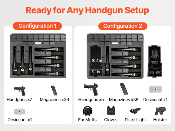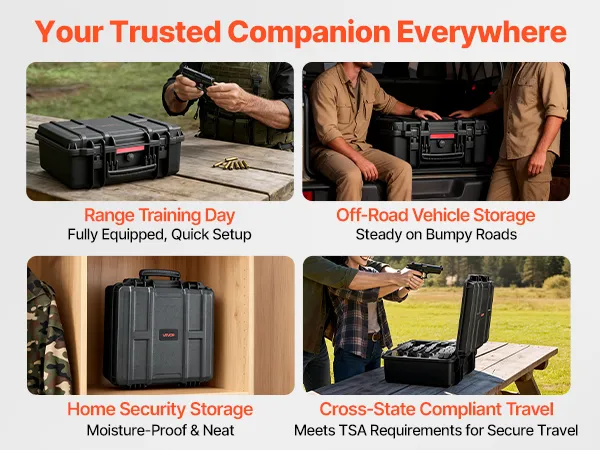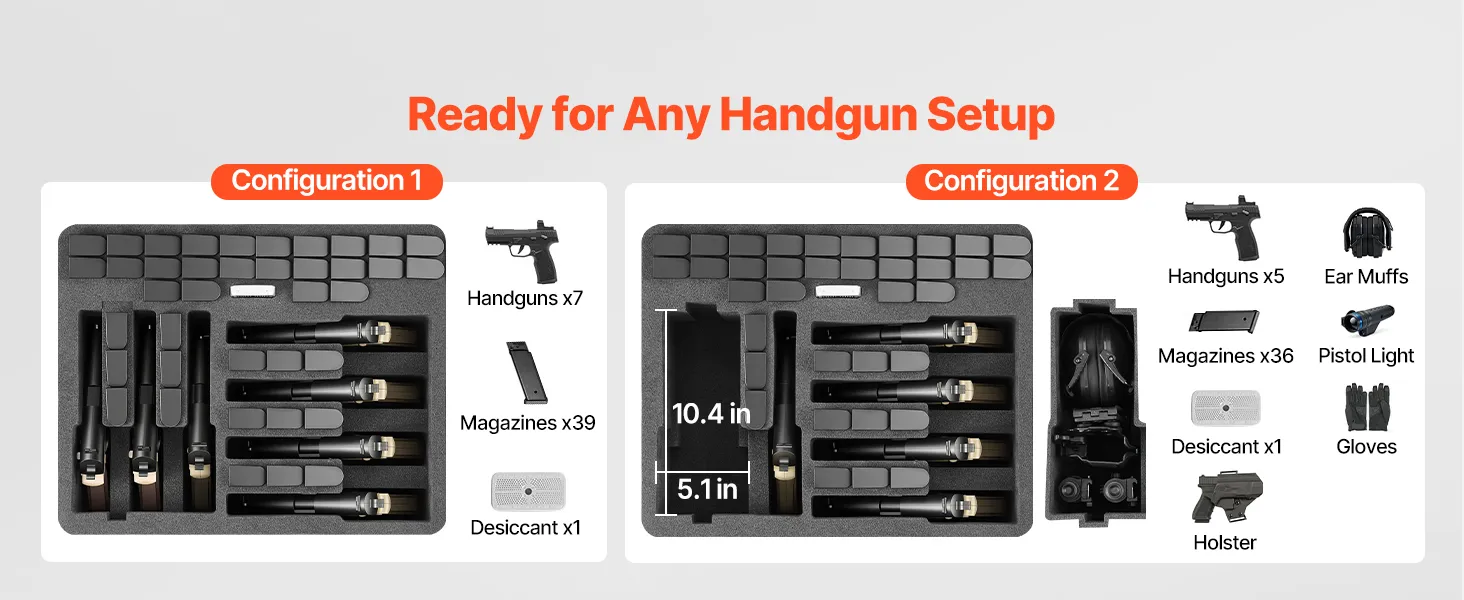 Firearm Protection: The hard pistol case holds up to 7 pistols and 39 magazines, fitting most handguns under 10.03 in / 254.76 mm including popular Glock models (not for revolvers). Ideal for the range, travel, or secure home storage