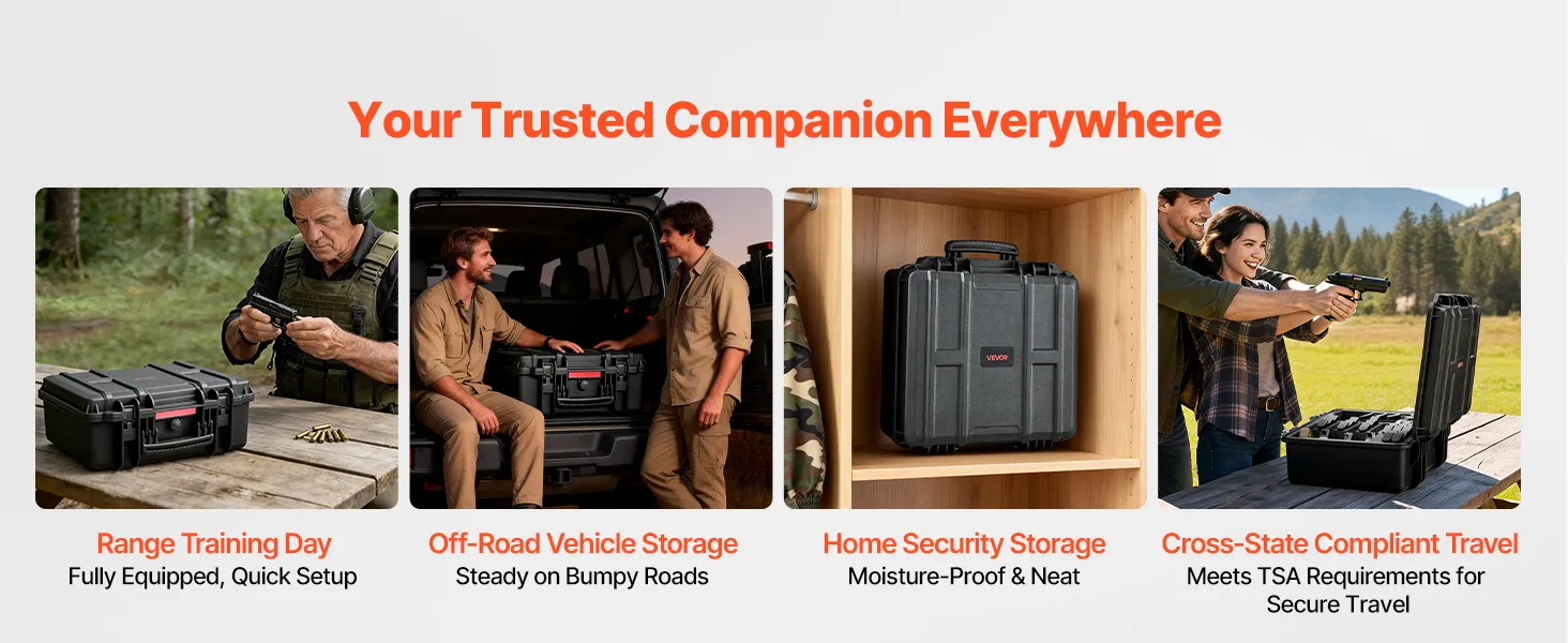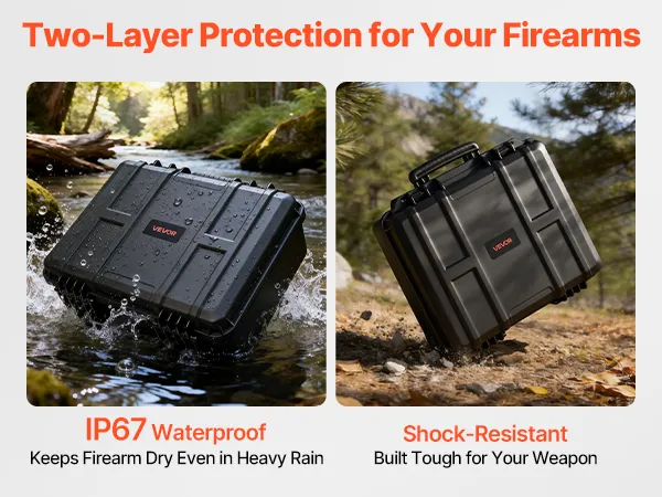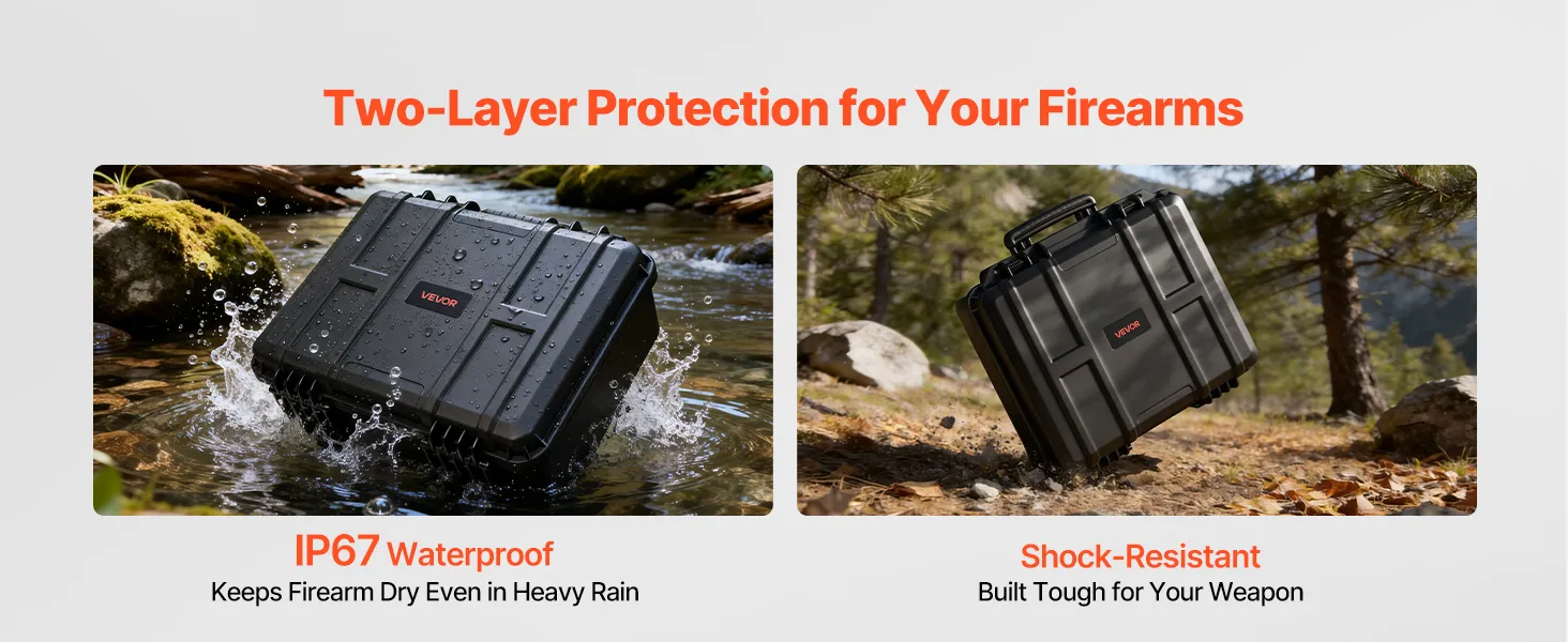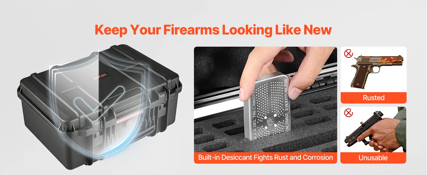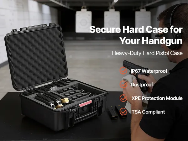 IP67 Waterproof & Dustproof: Our pistol case is made of impact-resistant PP. IP67 sealed design protects against rain, mud, sand, and dust. Internal desiccant keeps firearms dry, avoiding rust and ensuring long-lasting protection during storage and transport