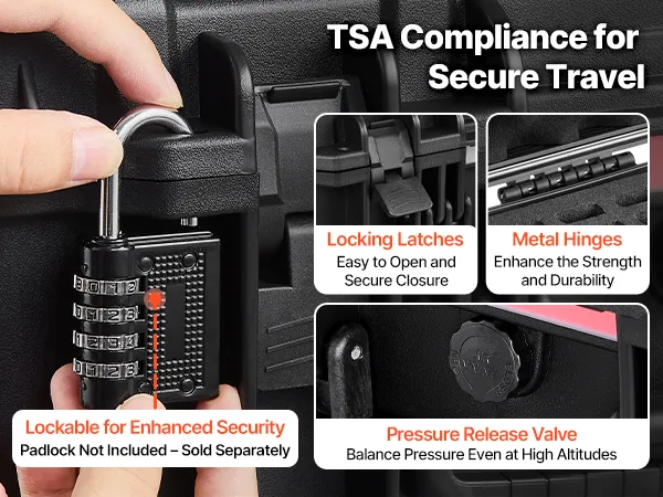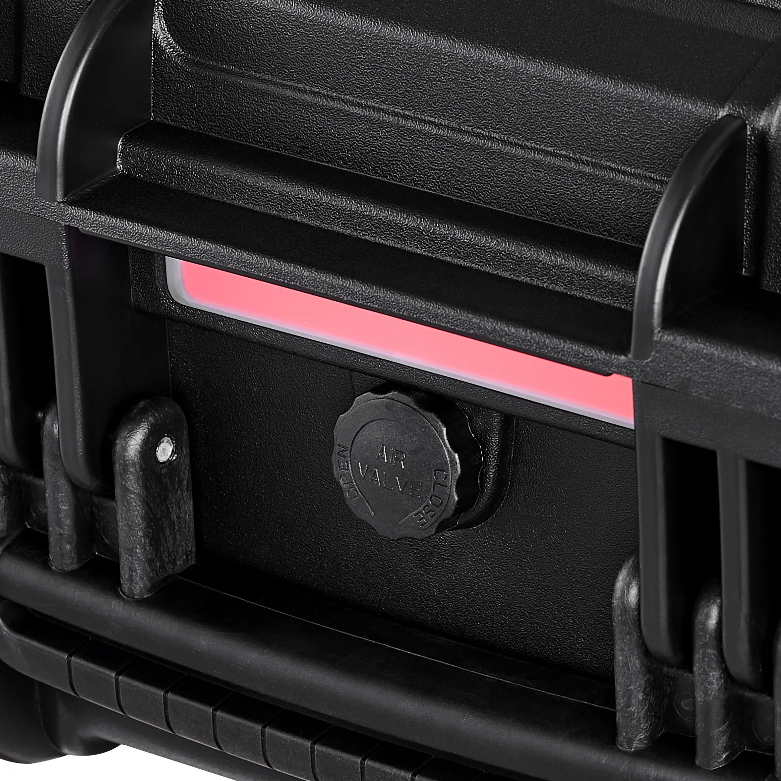 Durability And Longevity: This pistol gun case boasts metal hinges for superior wear resistance over plastic. They withstand repeated opening and closing, and a pressure-equalizing valve allows manual adjustment during transport, keeping firearms secure