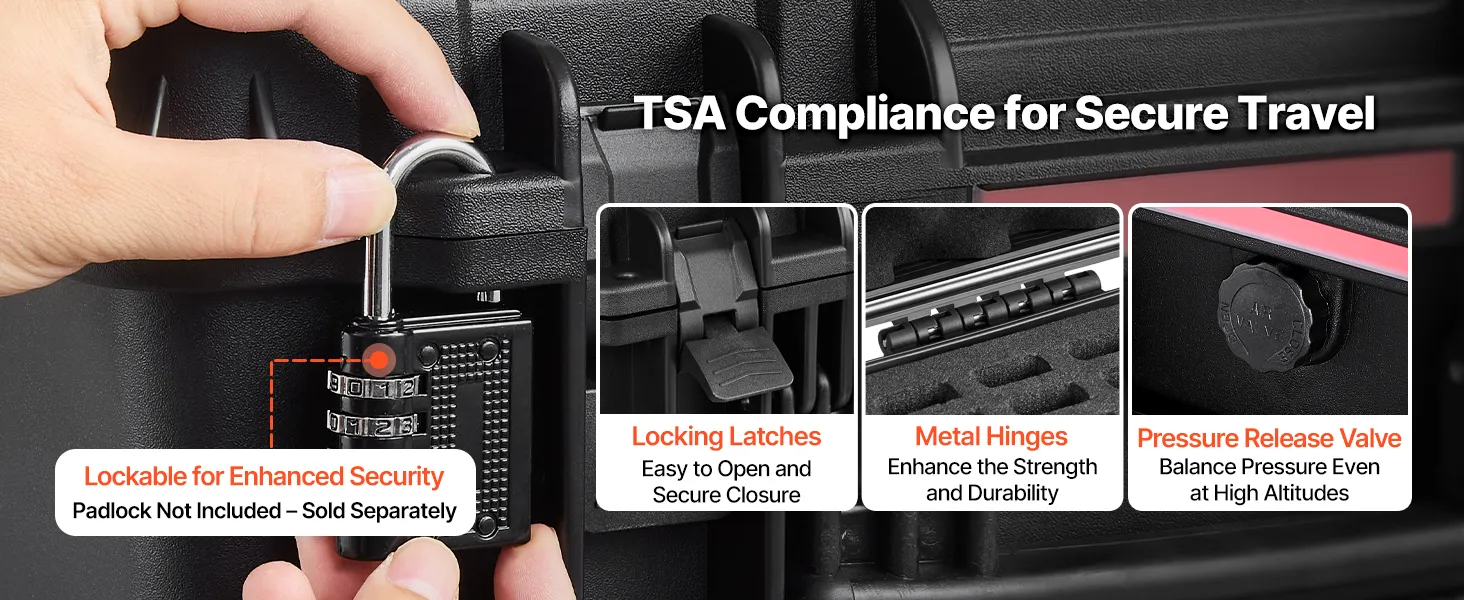 TSA Compliant: The rifle case is TSA tested for travel on planes, trains, and public transport. Two latches ensure secure closure, and two lock holes allow adding padlocks for extra firearm safety during transport (padlocks not included)