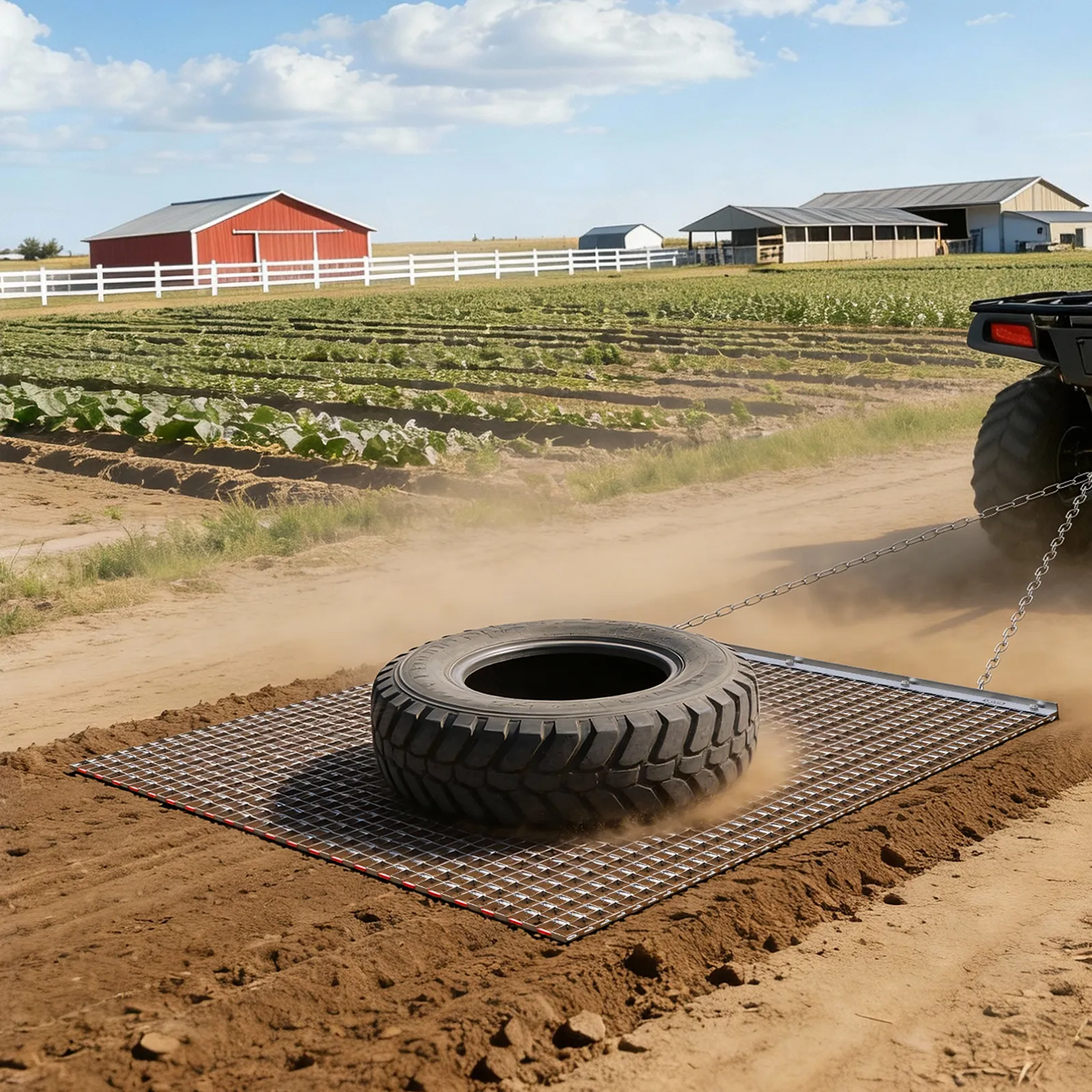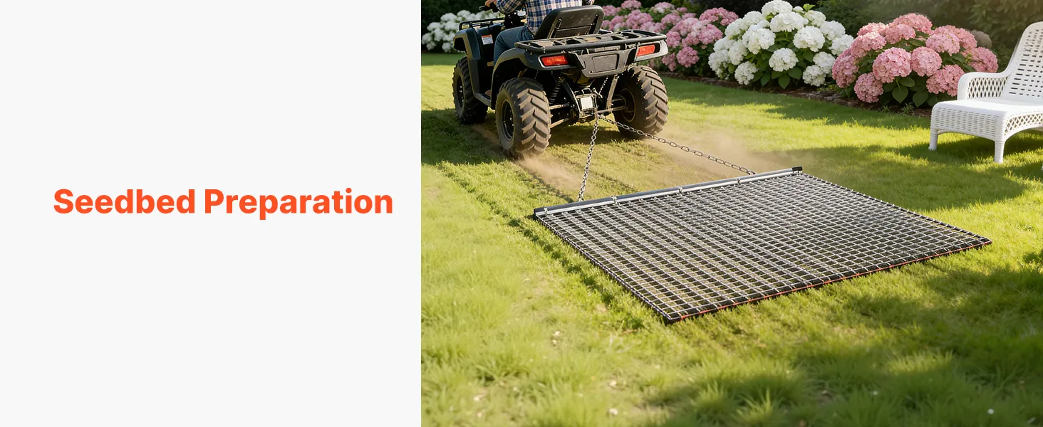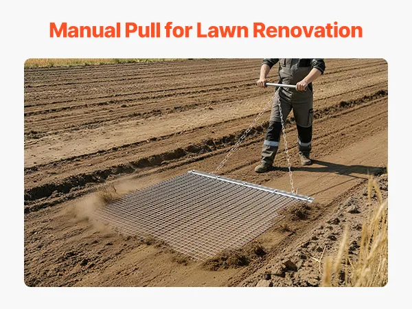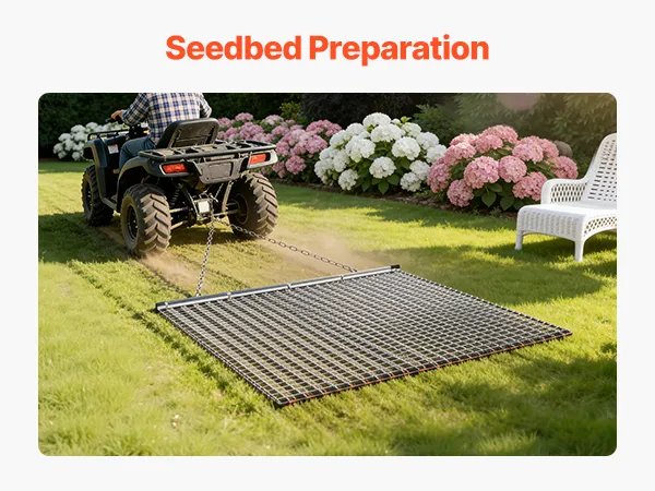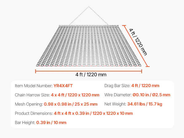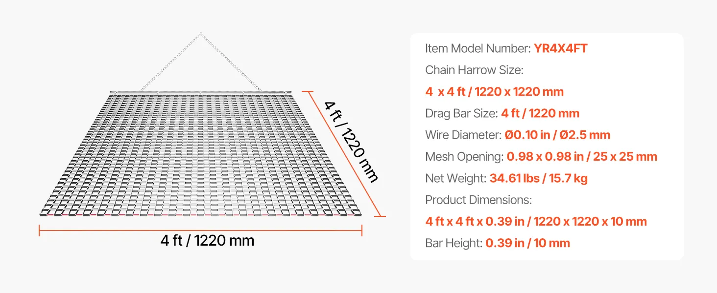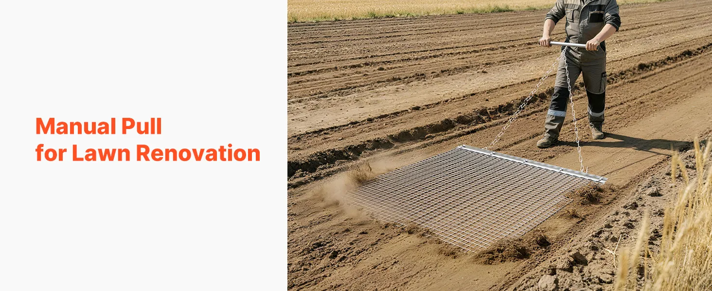 Heavy-Duty Steel Construction: Built with high-strength galvanized steel mesh and a reinforced frame, this chain harrow is long-lasting and durable. Ideal for driveways, lawns, and fields