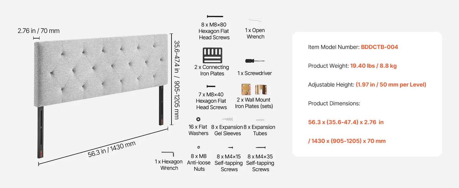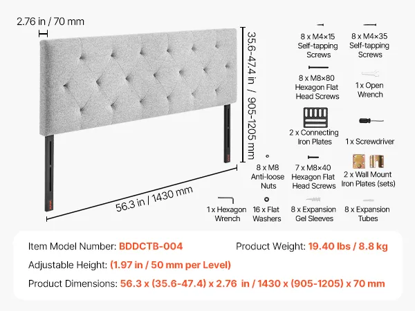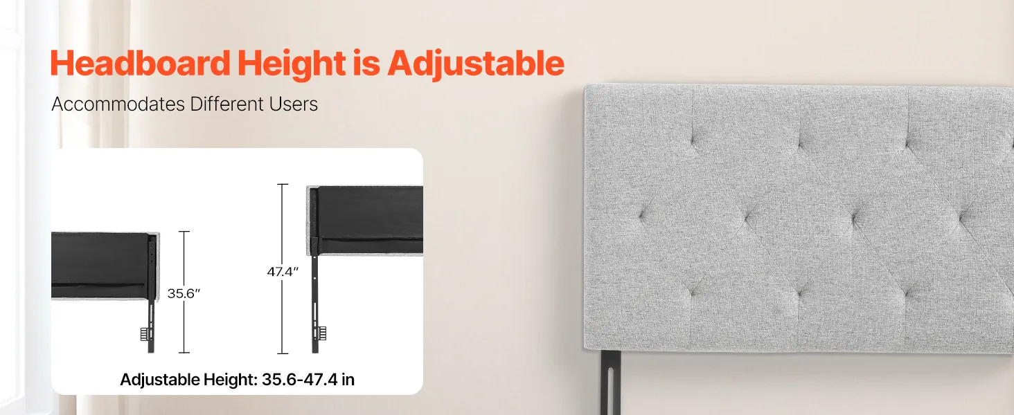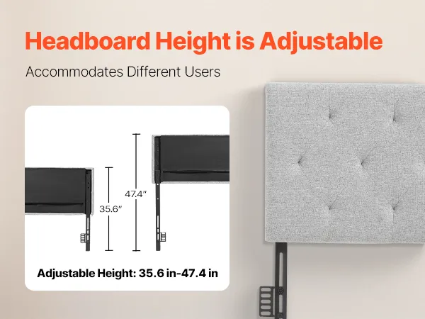 Our headboard is adjustable from 35.6 to 47.4 in, easily fitting various bed sizes without any compatibility concerns.