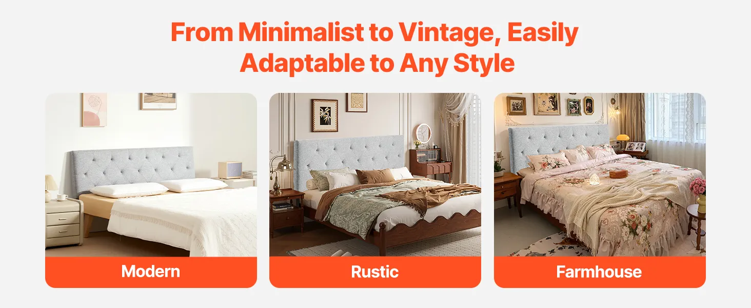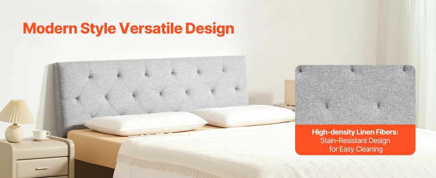 Anti-Stain Diamond Tufted: Made with high-density linen fabric that's both stain-resistant and easy to clean. Pet hair and dust can be wiped away in a snap, keeping things fresh and tidy. The unique diamond tufted design blends vintage and modern style, giving your bedroom a fresh new look and a touch of elegance.