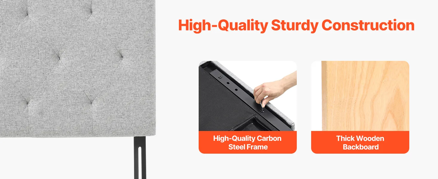 Stability and Durability: Crafted with a high-quality carbon steel frame and sturdy steel legs for maximum stability. You can count on this headboard to stay firmly in place, providing reliable support for years to come.