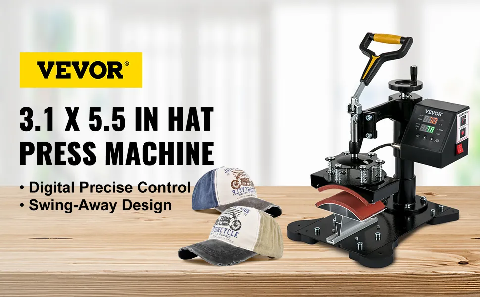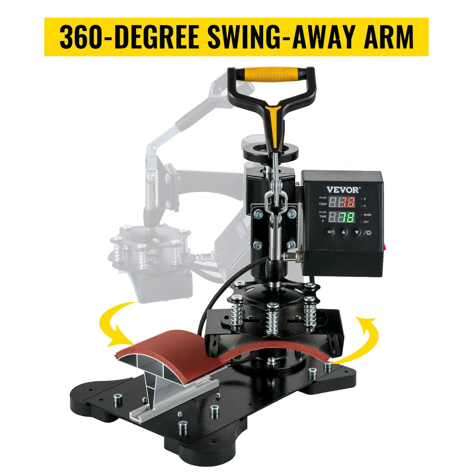 This newly-developed swing-away caps / hats heat press transfer machine is designed for both commercial and home use. It can transfer letters, numbers and images on caps, baseball hats or any other curled items. This machine has a nice appearance with a fine workmanship, compact and space-saving design. It can produce a delightful result in a few minutes, and you will enjoy the memories every time you use it!