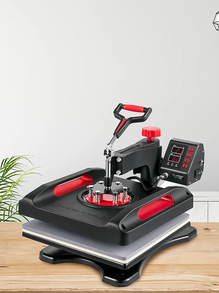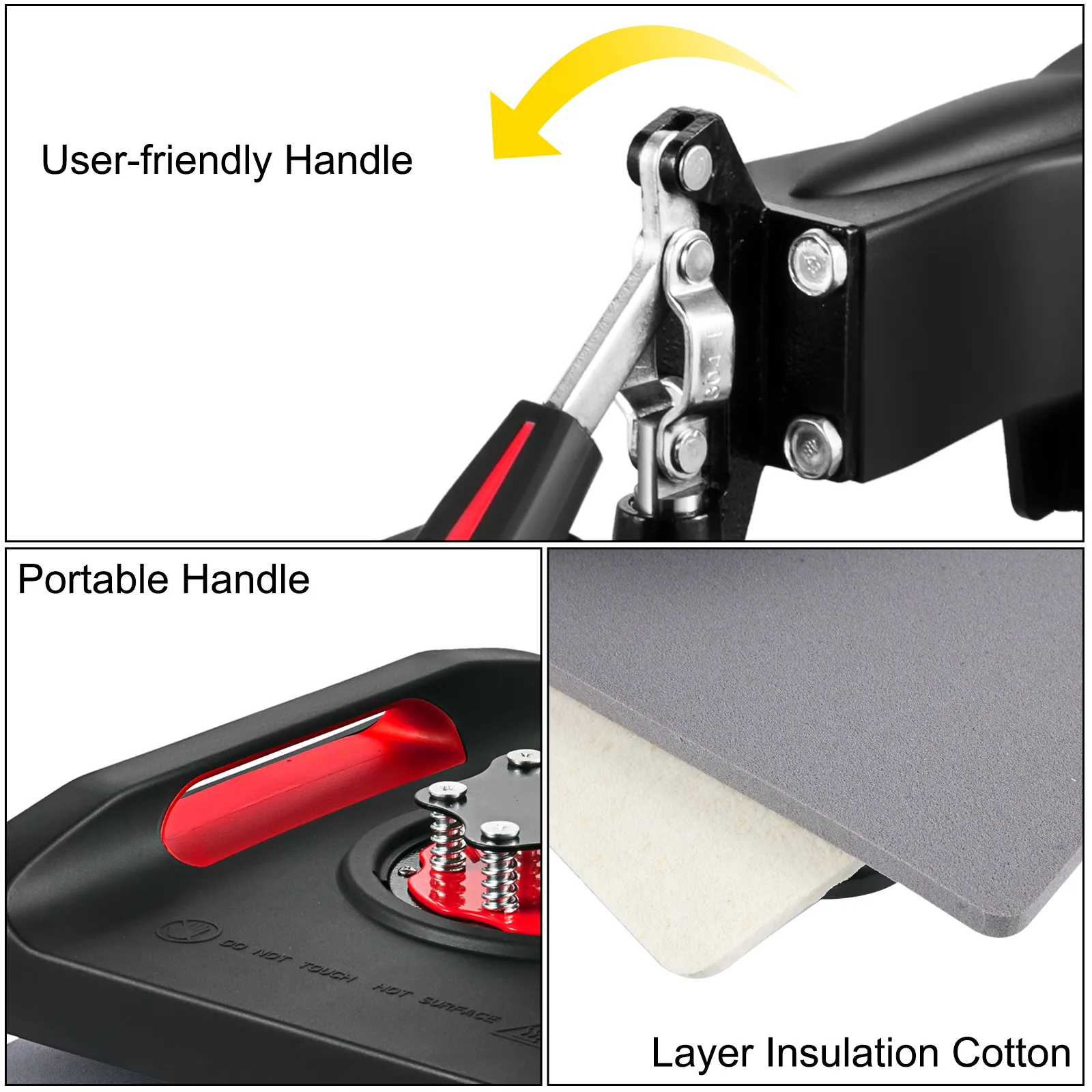 This 15 x 15 heat press adopts the latest double-tube heating technology and two-layer insulation technology to improve the transfer performance. With reliable motherboards & an accurate temperature control device, the stability has also been further improved. All the necessary accessories will be provided to bring you the beautiful graphics on caps, T-shirts, mugs, plates, etc.