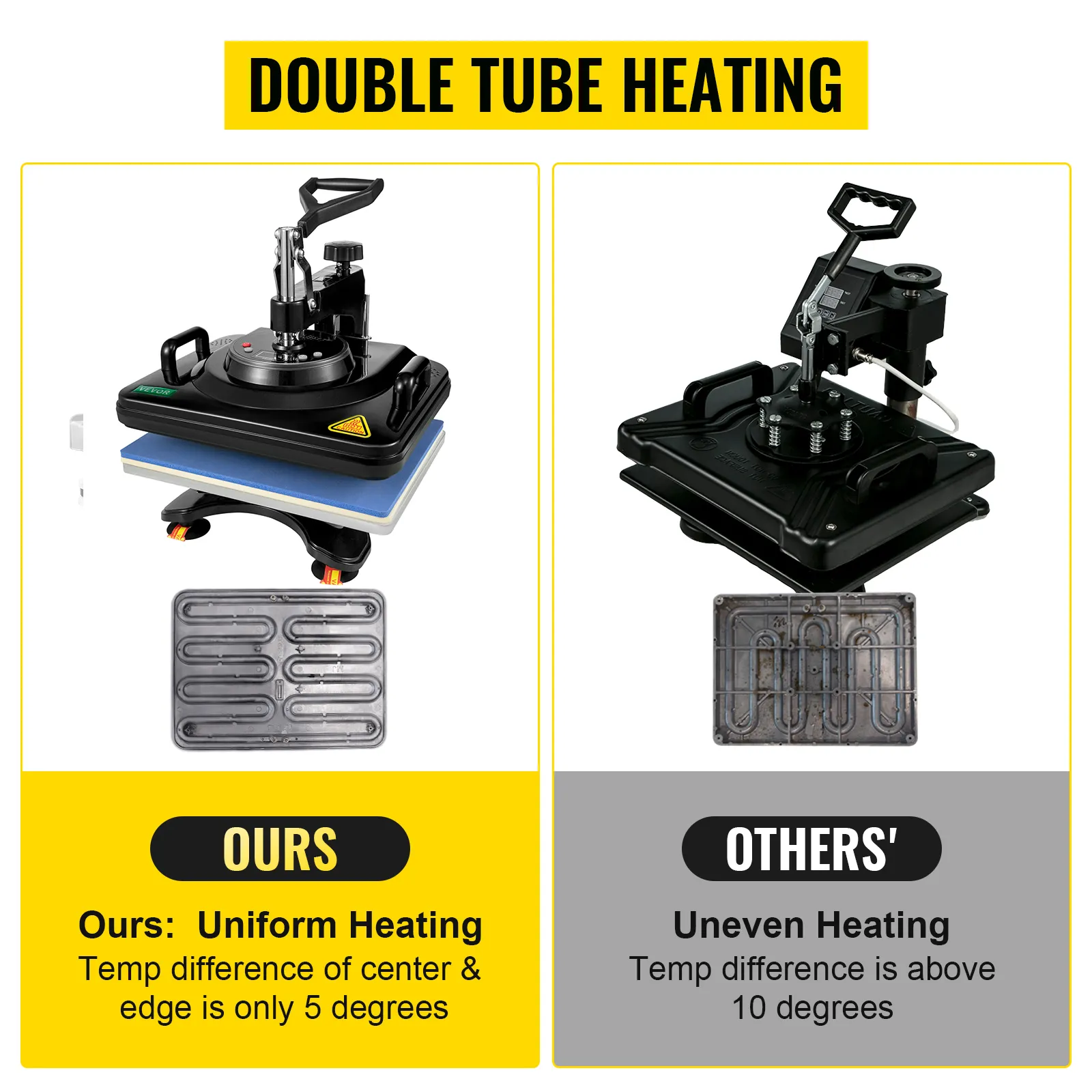 Double-tube heating design ensures the heating more uniform and the better transfer quality. Compared with the single tube heating, the temperature difference is only about 5℃ between the center and the edge.