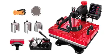 • This 8 in 1 heat press has a built-in teflon coated 12"x 15" (30 X 38 cm) heat platen with a full range of heating coils to allow for consistency throughout its surface. Boasting all the must-have attachments, it can be used for T-shirts, caps, ceramic plates, mugs, and other fabrics & materials. Best choice for home decorations, customized gifts, and holiday celebrations.