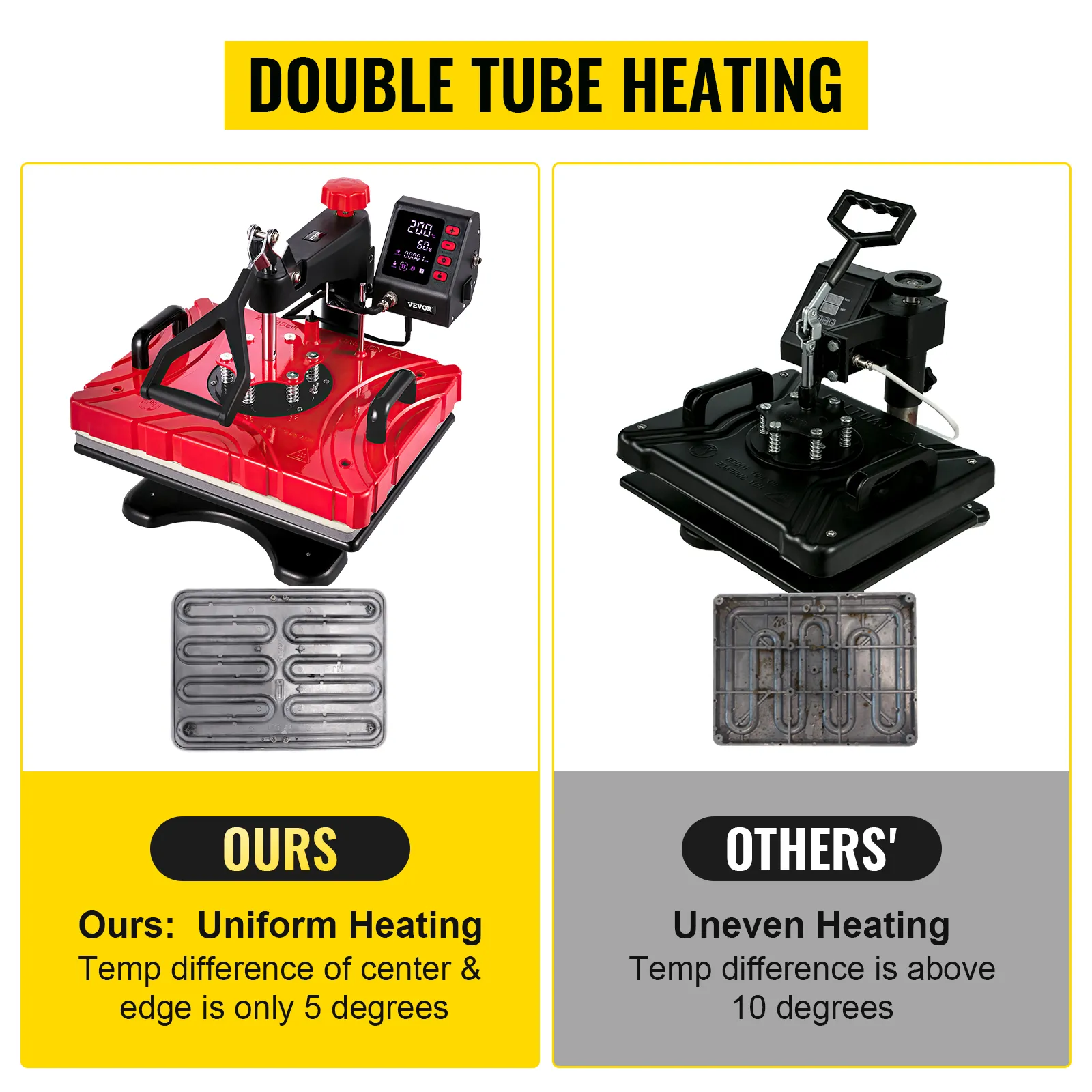 Dual-tube heating design ensures more uniform heating and superior transfer quality. The entire base heats consistently and quickly.