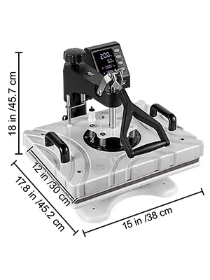 This 8 in 1 heat press has a built-in teflon coated 12"x 15" (30 X 38 cm) heat platen with a full range of heating coils to allow for consistency throughout its surface. Boasting all the must-have attachments, it can be used for T-shirts, caps, ceramic plates, mugs, and other fabrics & materials. Best choice for home decorations, customized gifts, and holiday celebrations.