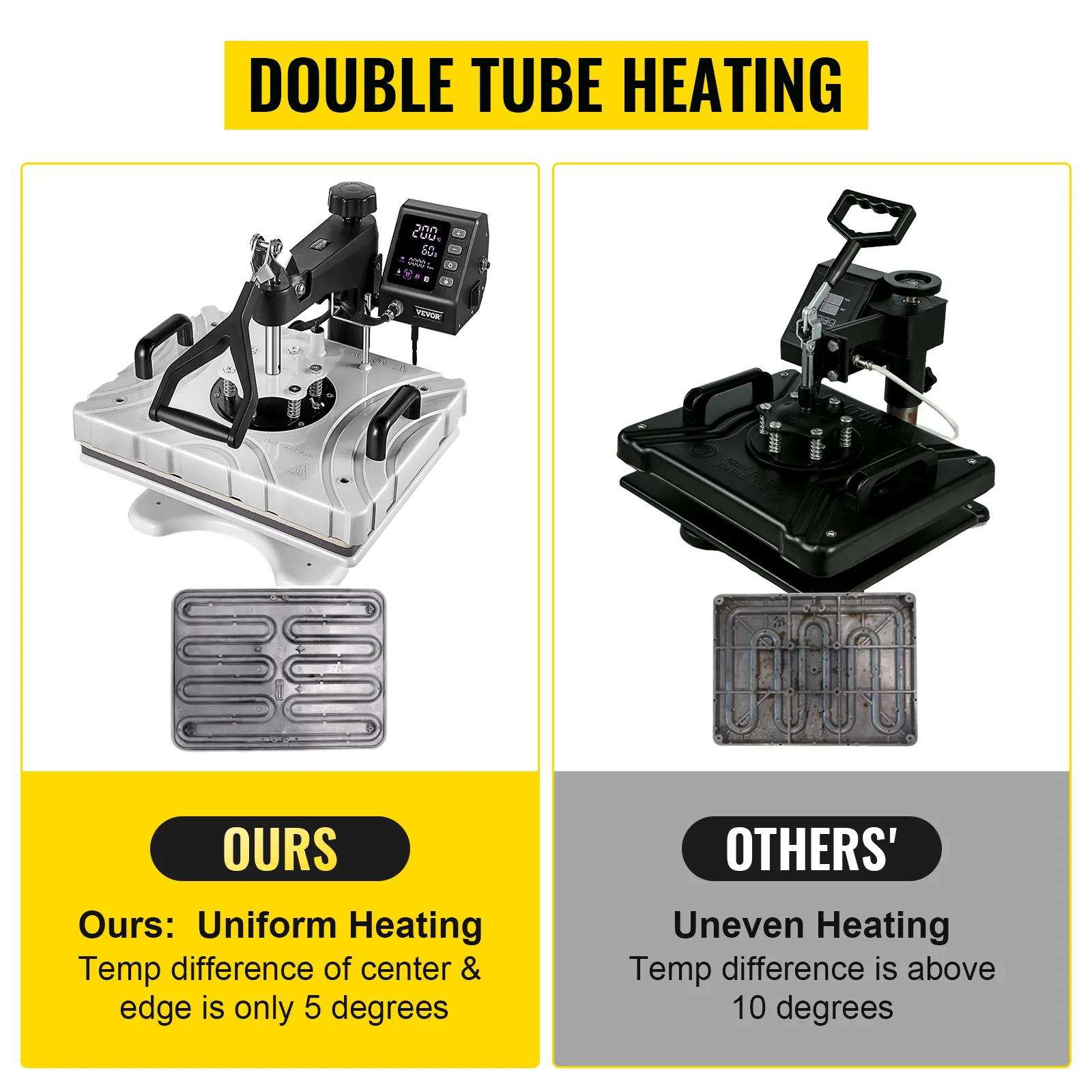 Pro Heating System: Built-in latest dual-tube fast-heating tech distributes edge-to-edge heat quickly and evenly. Up to 50% improvement of the temperature consistency for more uniform heating and better shirt printing effect with two layers insulation pads!