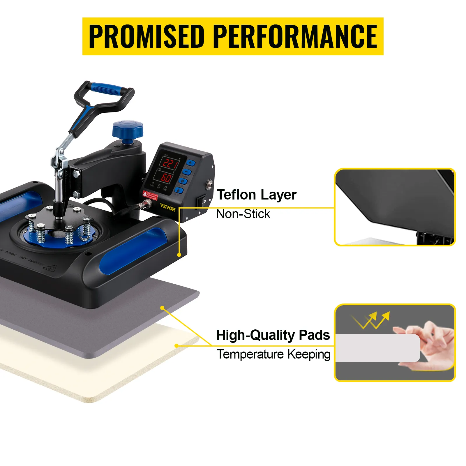 Our heat press features large-screen display, easy to operate. The all-new core control system delivers better thermosensitivity.