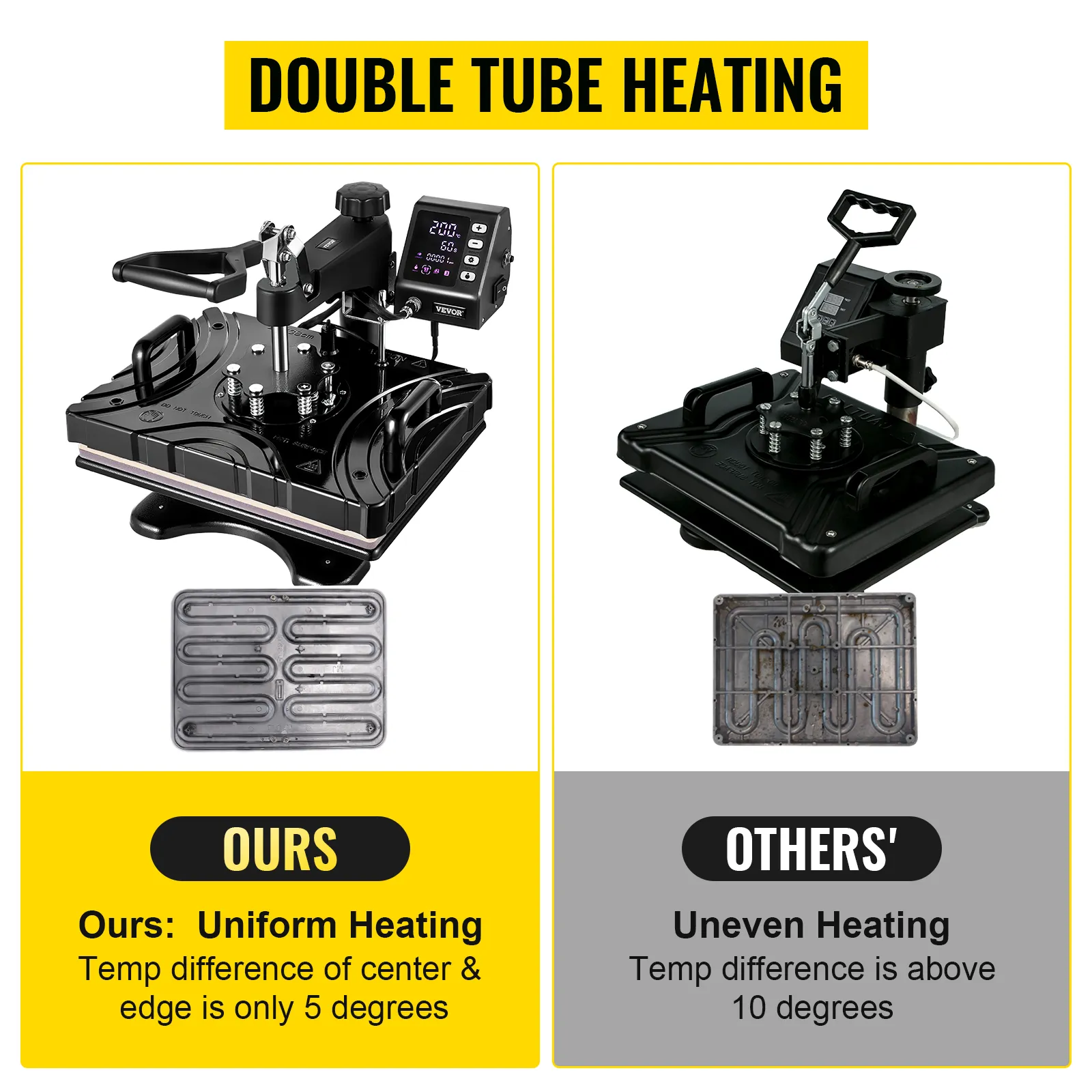 Dual-tube heating design ensures more uniform heating and superior transfer quality. The entire base heats consistently and quickly.