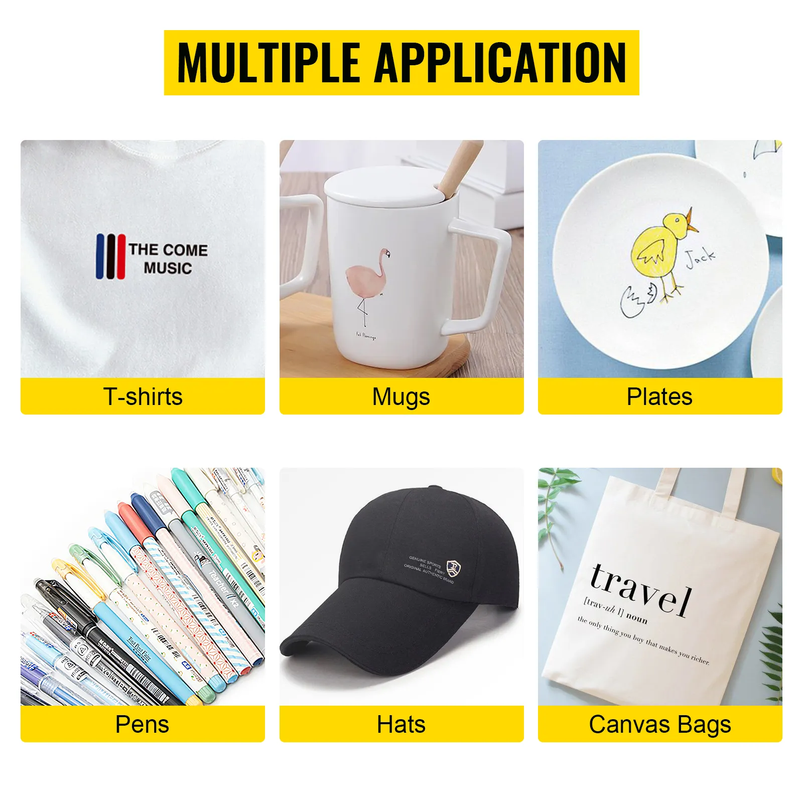 10-In-1 Kit with Pen Ironing: In addition to transferring onto T-shirts, cups, mugs, hats, this heat press machine adds the pen press to print different patterns on pens. A great option for DIY uses or small business purposes, realizing your creative and personalized needs!