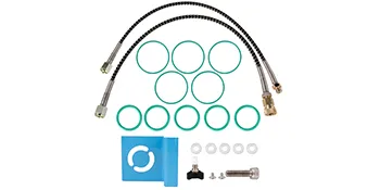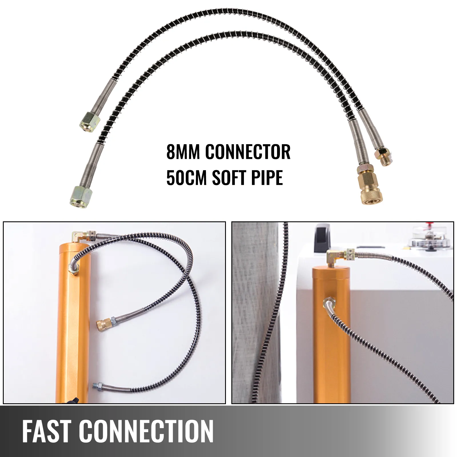 The oil and water separator includes two 50 cm high-pressure hose with spring and 8 mm connector. It is designed for an easy and fast connection.