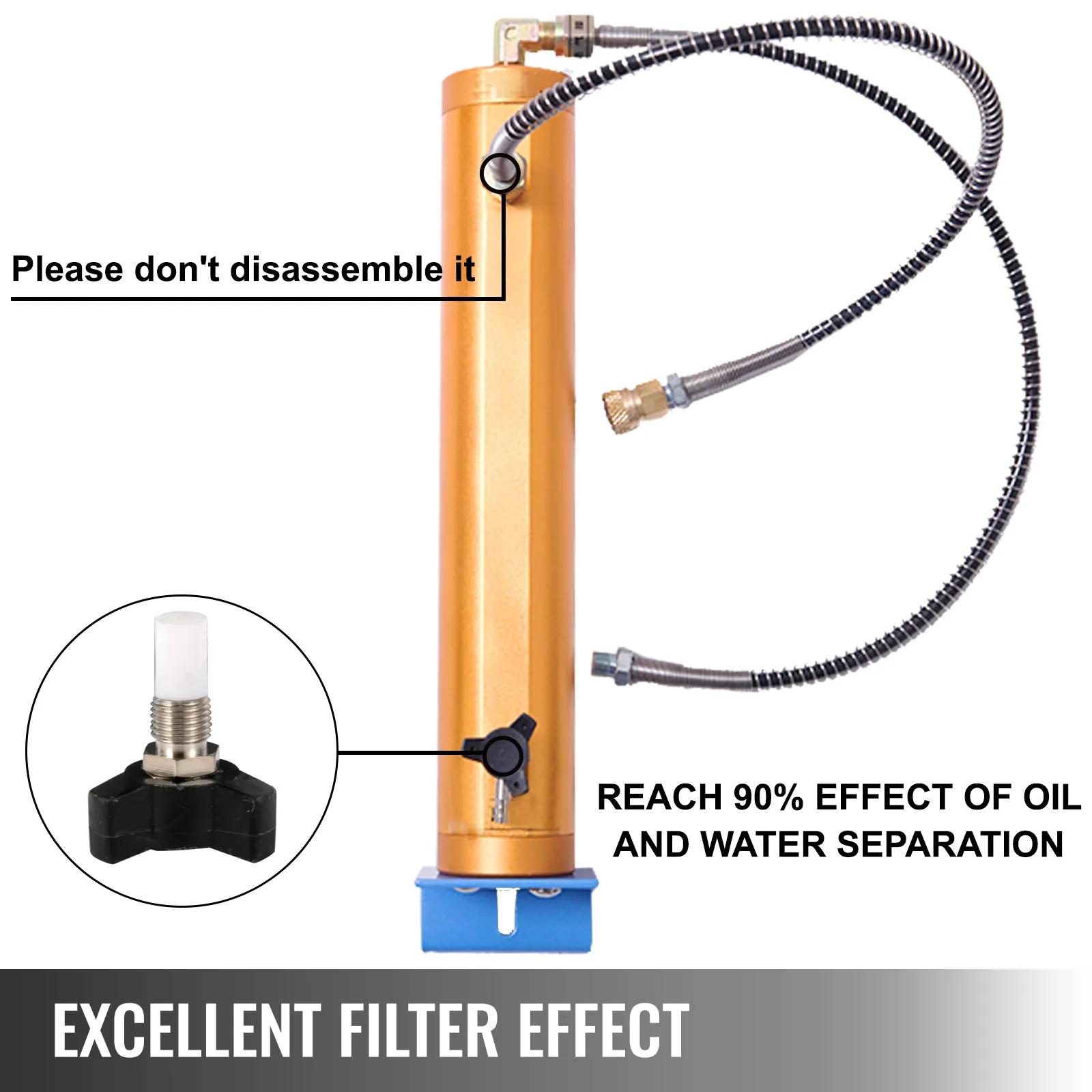 【VARIOUS USES】- The water-oil air filter is compatible with many kinds of air compressors, such as diving compressors. The surface is anodized in golden, and about 90% of water and oil can be filtered out.