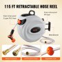 VEVOR Retractable Hose Reel, 115 ft x 1/2 inch, 180° Swivel Bracket Wall-Mounted, Garden Water Hose Reel with 9-Pattern Nozzle, Automatic Rewind, Lock at Any Length, and Slow Return System VEVOR Retractable Hose Reel, 115 ft x 1/2 inch, 180° Swivel Bracket Wall-Mounted, Garden Water Hose Reel with 9-Pattern Nozzle, Automatic Rewind, Lock at Any Length, and Slow Return System
