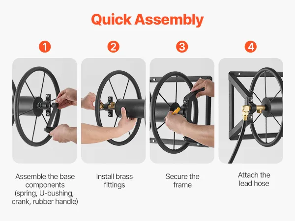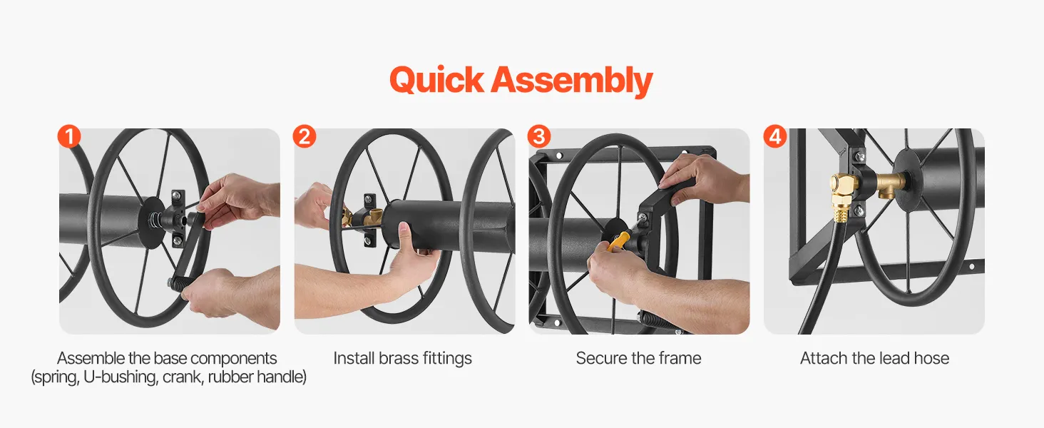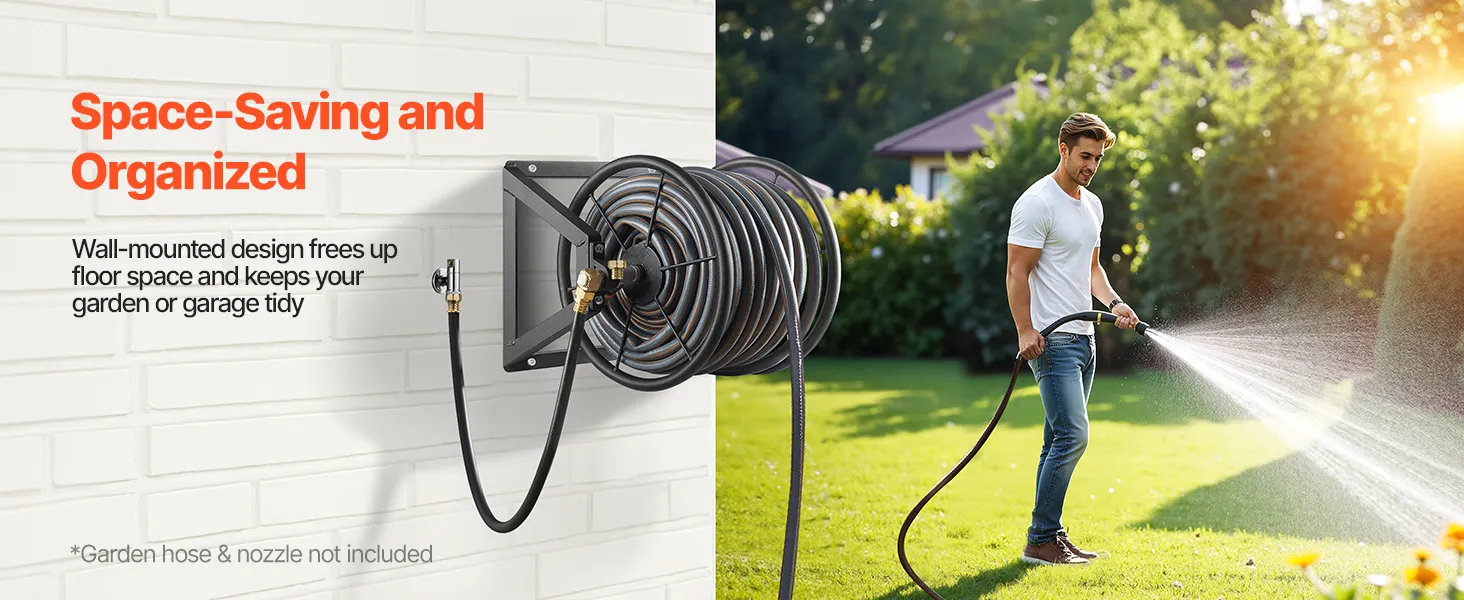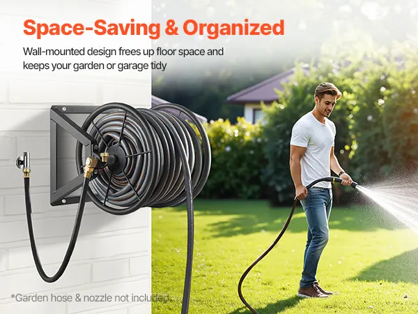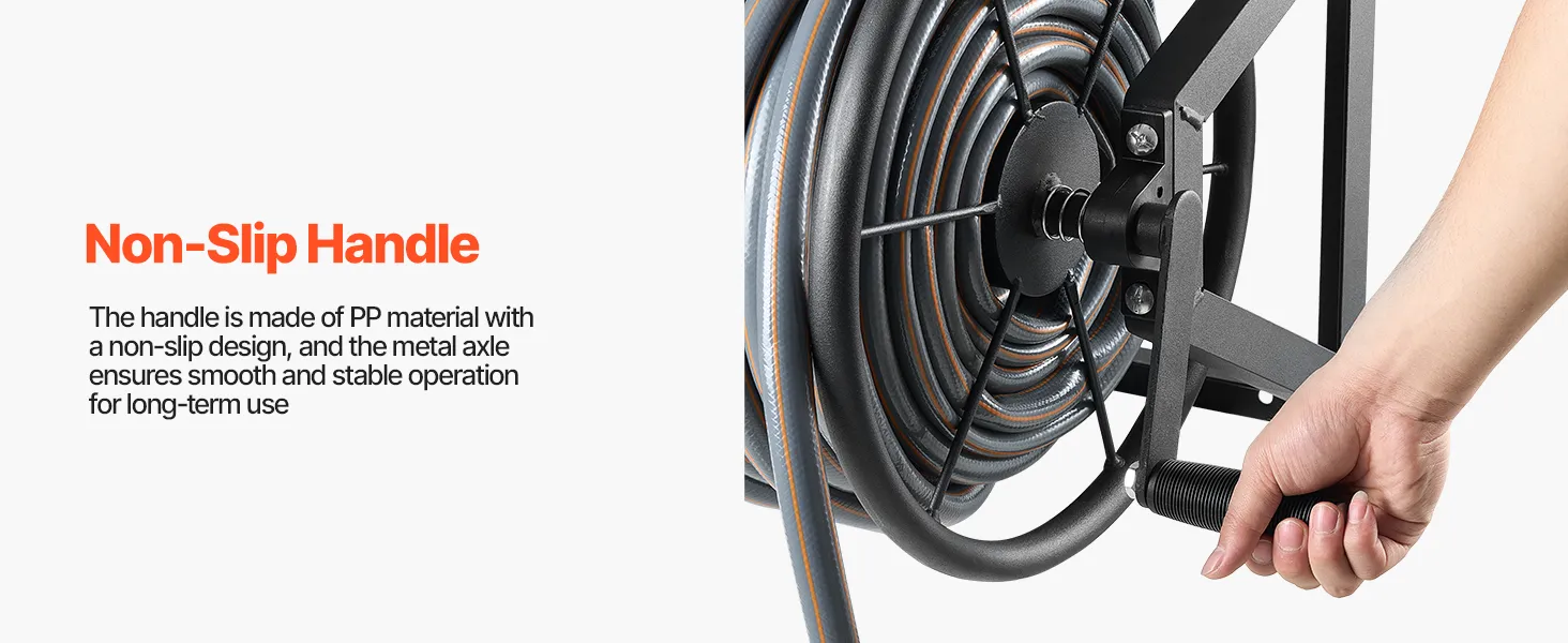 Space-Saving Design: The included sturdy bracket (Q235 metal angle iron) and anti-loosening screws ensure the hose reel is securely mounted on the wall, saving floor space. The hose stays neatly stored, reducing clutter and improving efficiency.