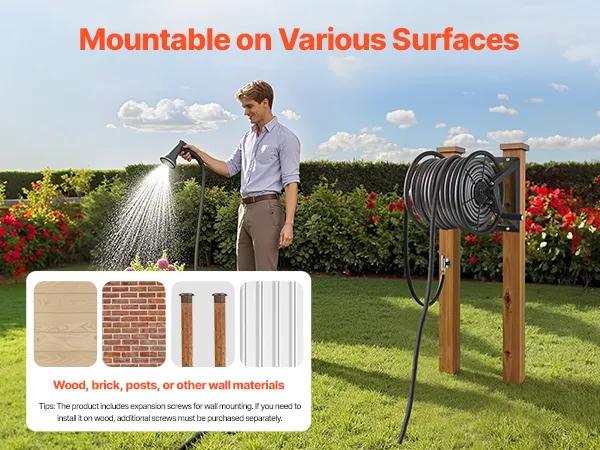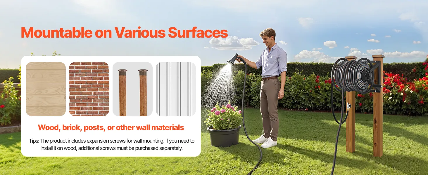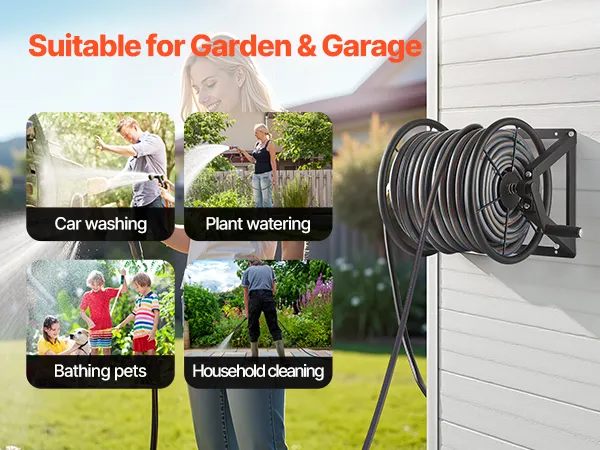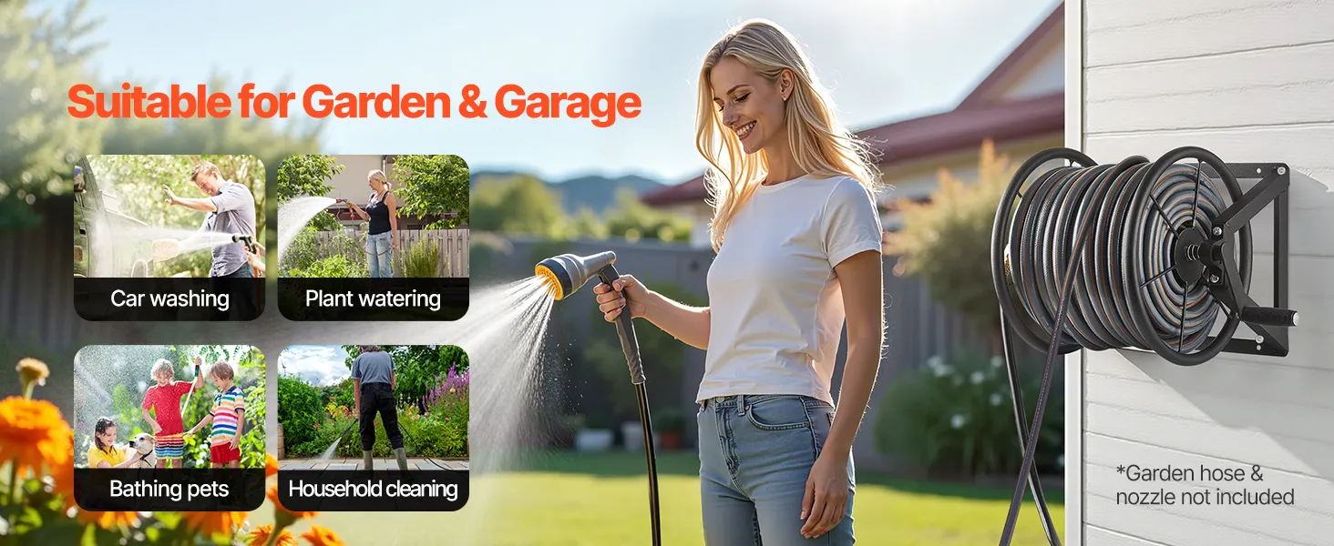 Multiple Applications: Designed for backyard, garden, patio, and other outdoor environments, this hose reel ensures versatile watering applications. This reliable power washer hose reel is ideal for watering plants, washing your car, or cleaning outdoor surfaces