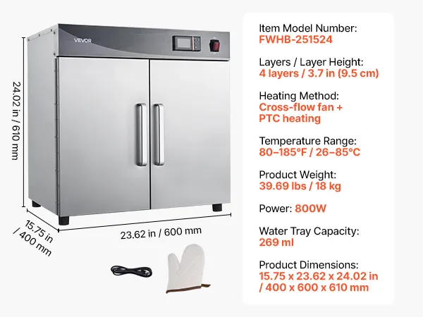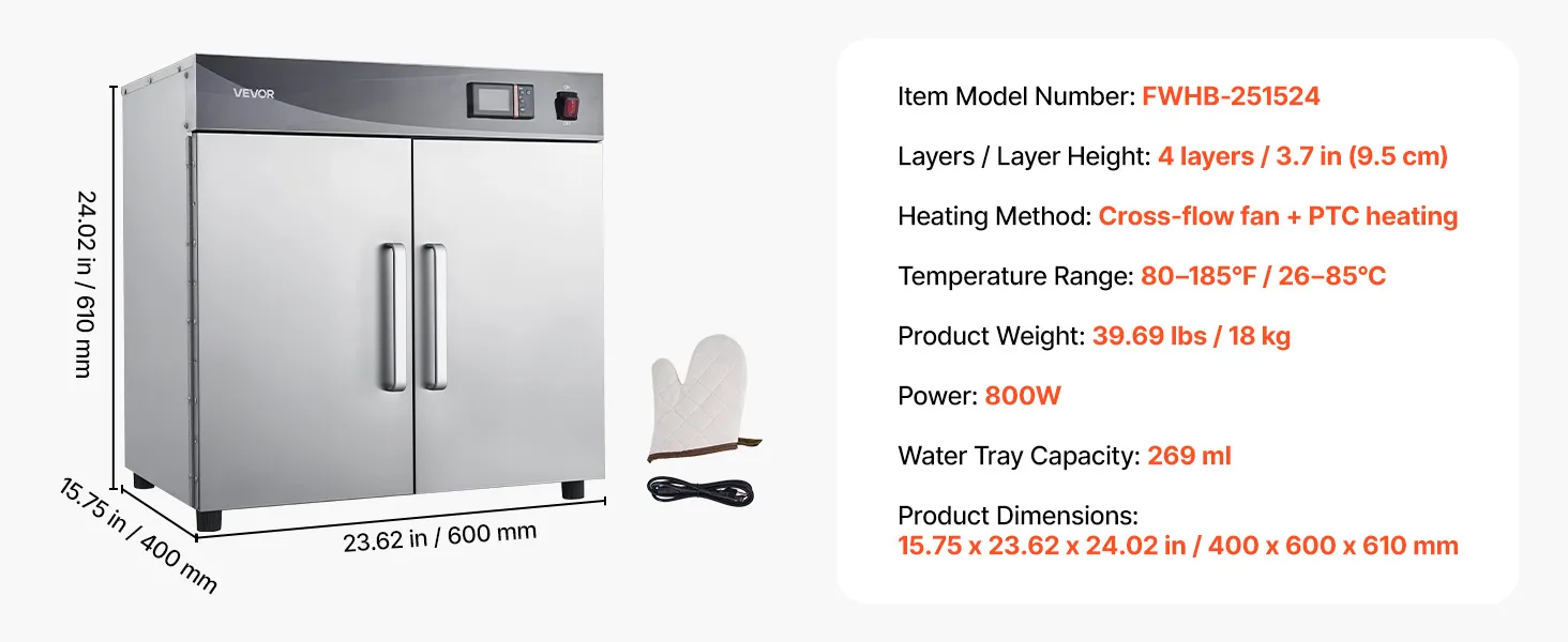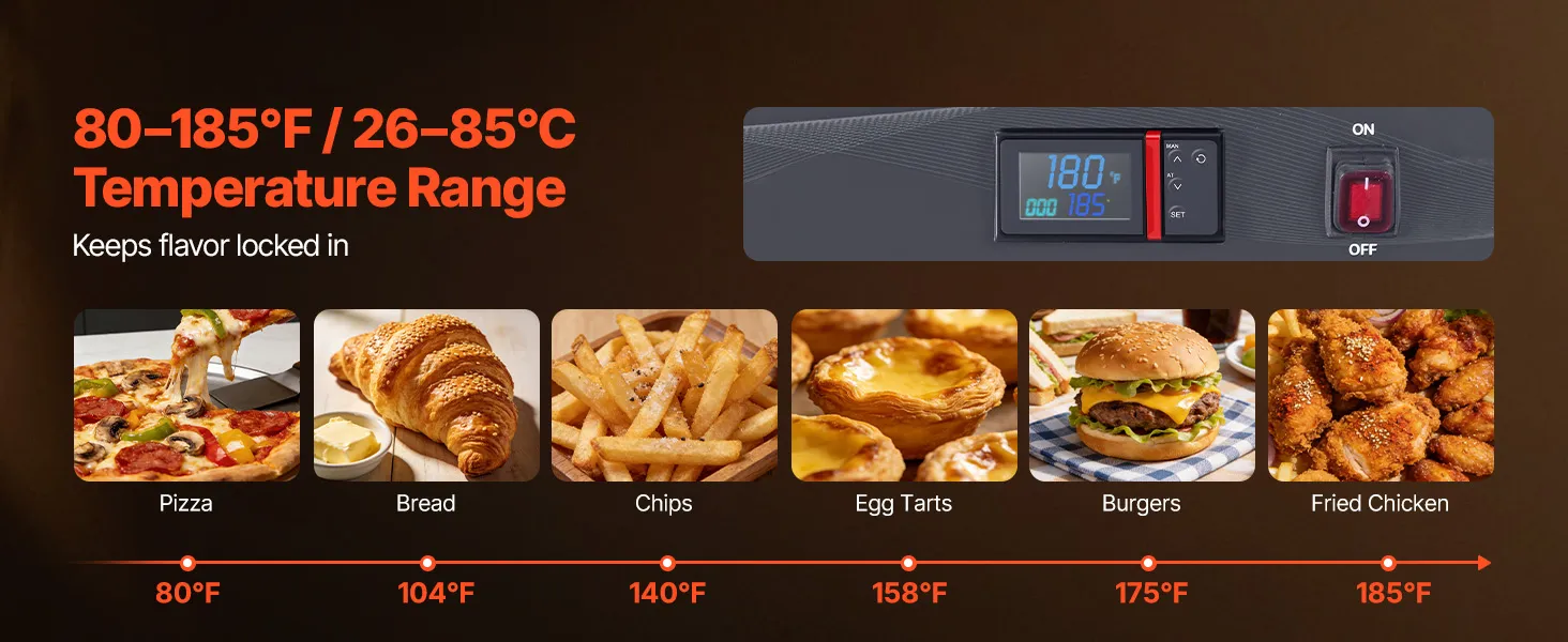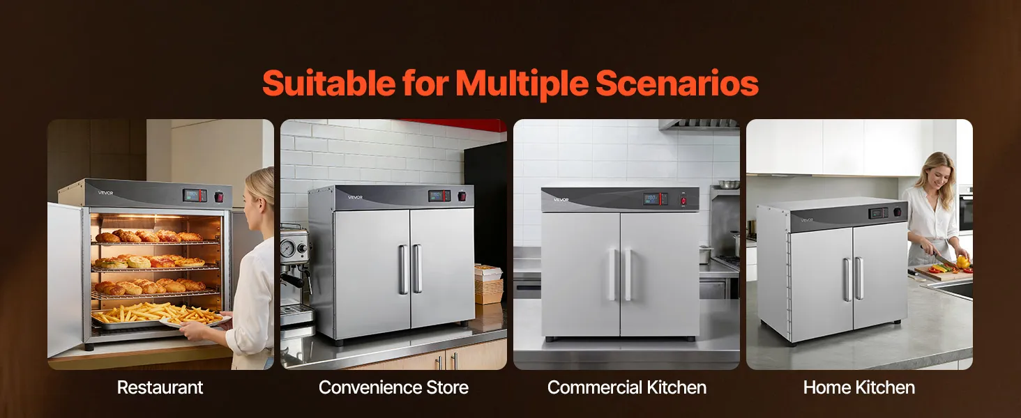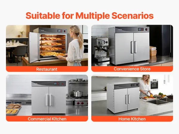 Versatile for Multiple Uses: Ideal for keeping food hot, proofing dough, dehydrating snacks, or gently defrosting. Perfect for catering, schools, cafeterias, and home kitchens, ensuring delicious, ready-to-serve meals at all times