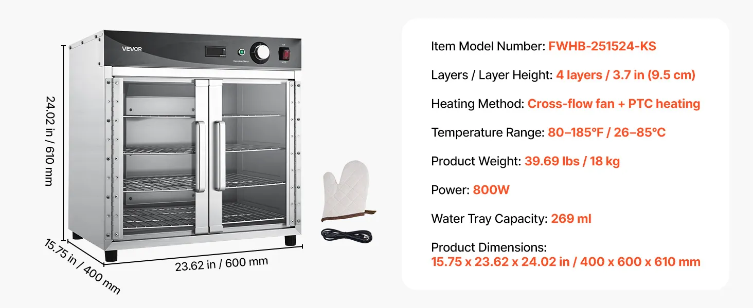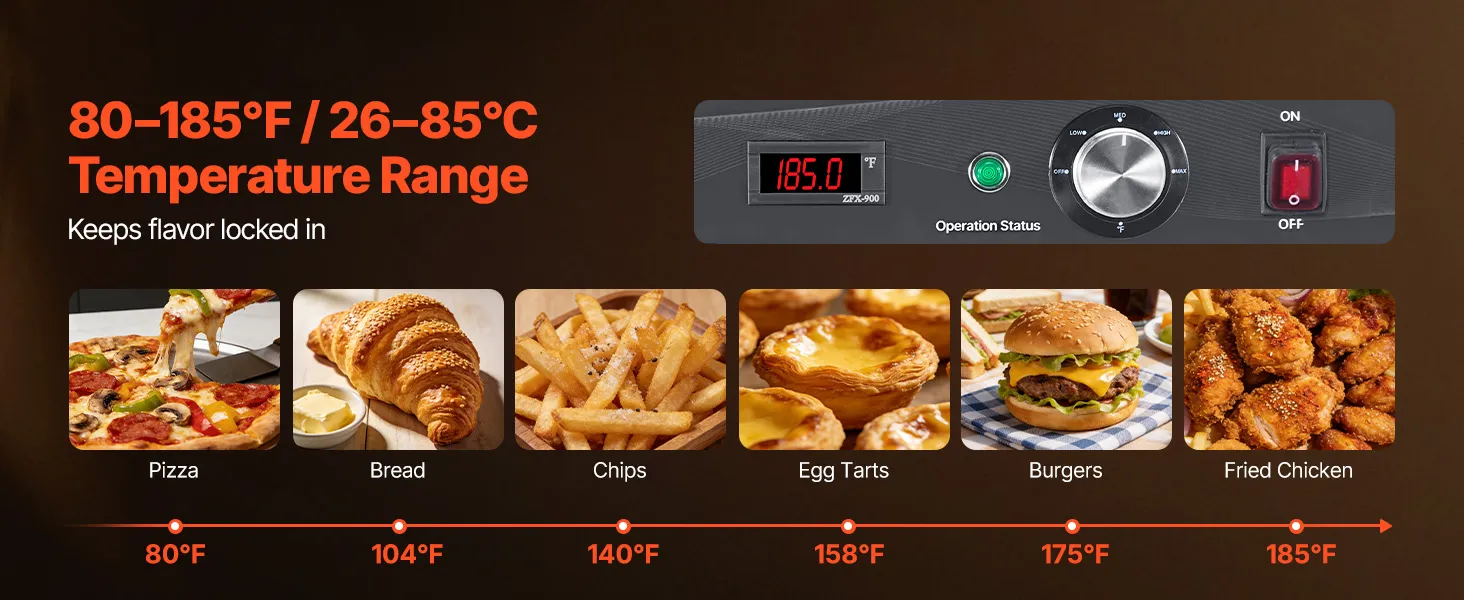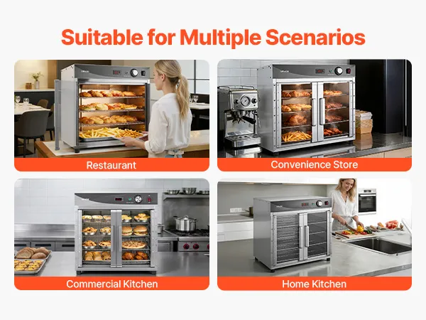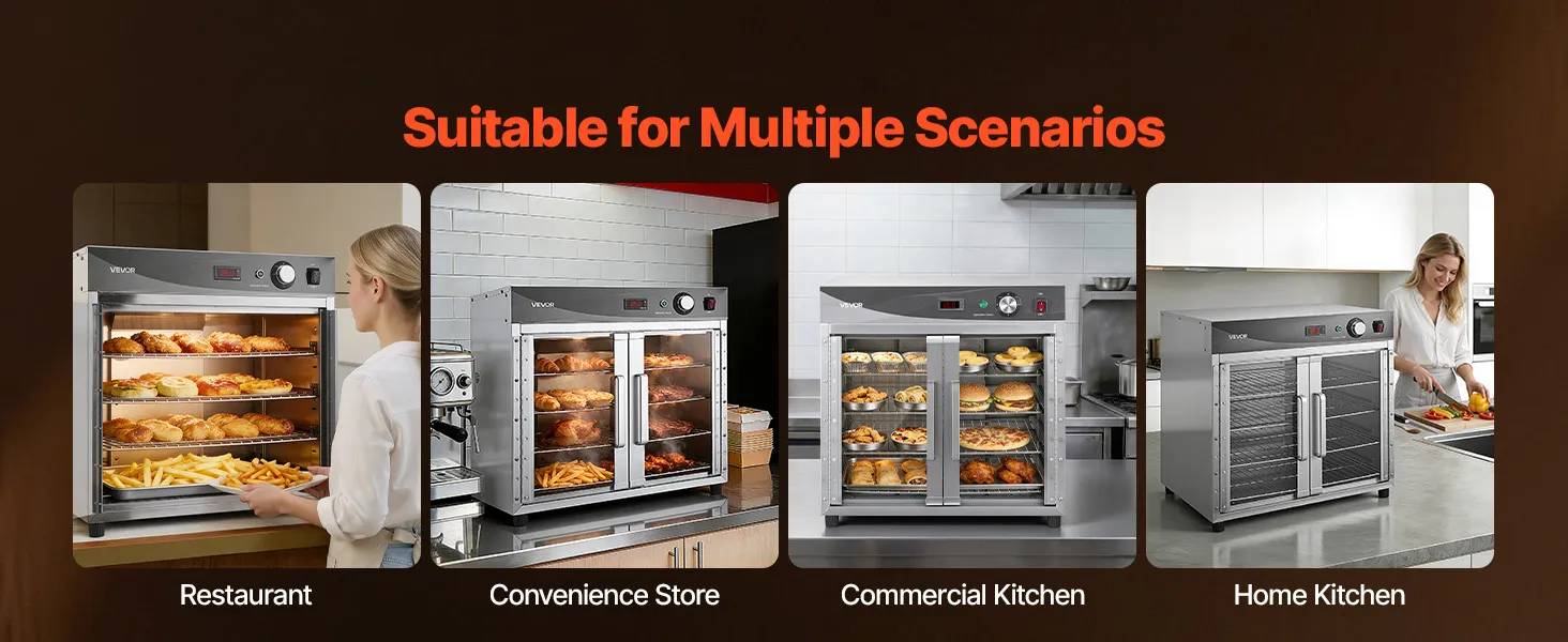 Versatile for Multiple Uses: Ideal for keeping food hot, proofing dough, dehydrating snacks, or gently defrosting. Perfect for catering, schools, cafeterias, and home kitchens, ensuring delicious, ready-to-serve meals every time