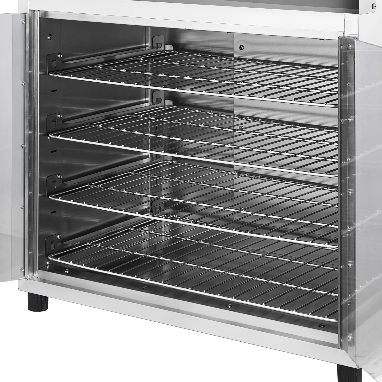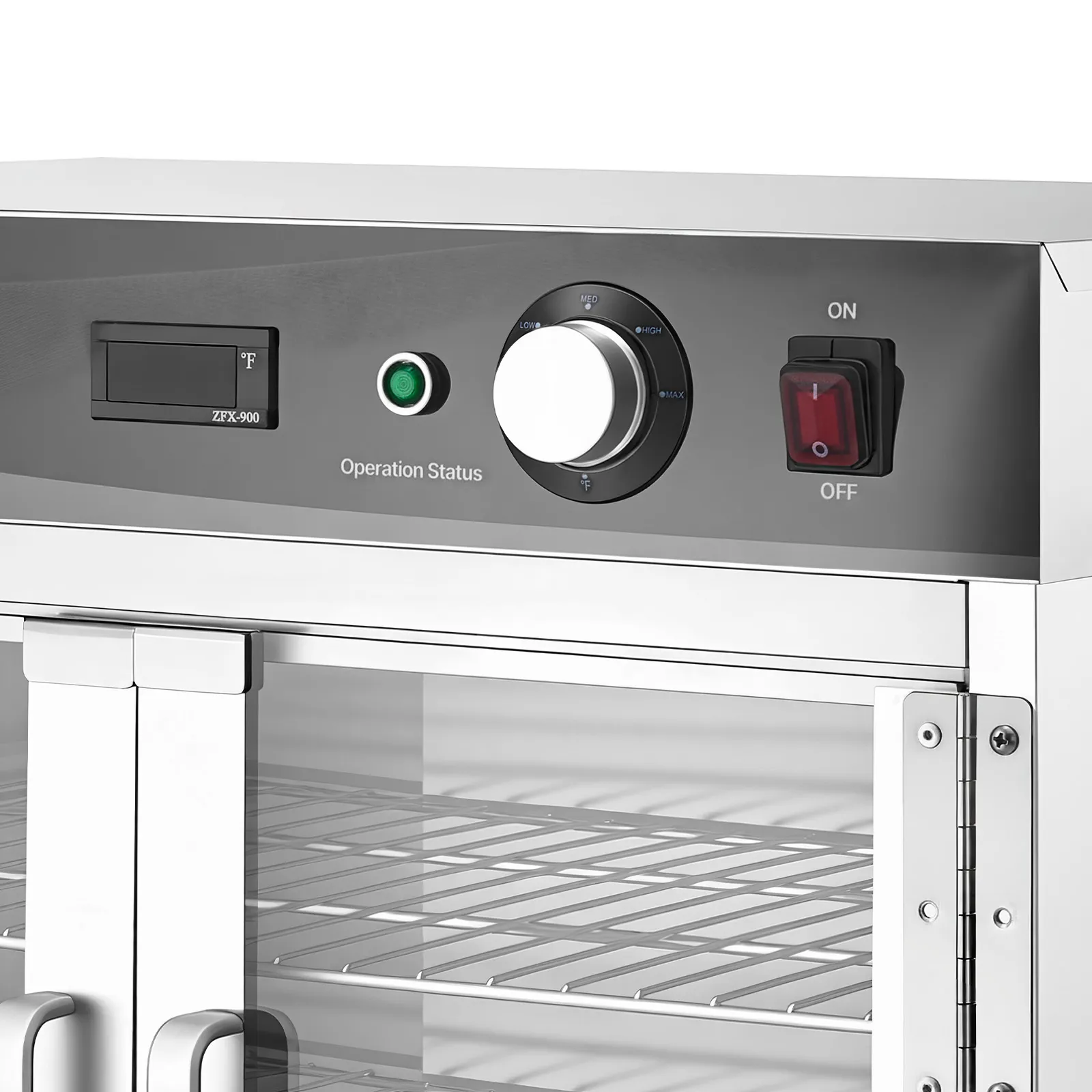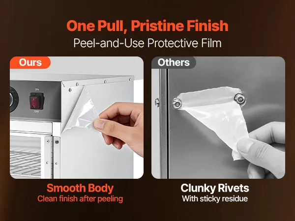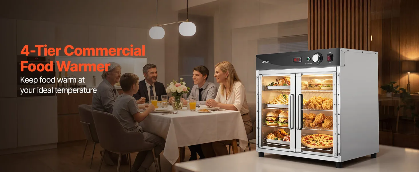 Superior Insulation & Visibility: Constructed with thickened stainless steel and a tight door seal to minimize heat loss. The double-layer tempered glass enhances insulation while providing clear visibility. 360° hot air circulation ensures even heating and energy efficiency for reliable holding