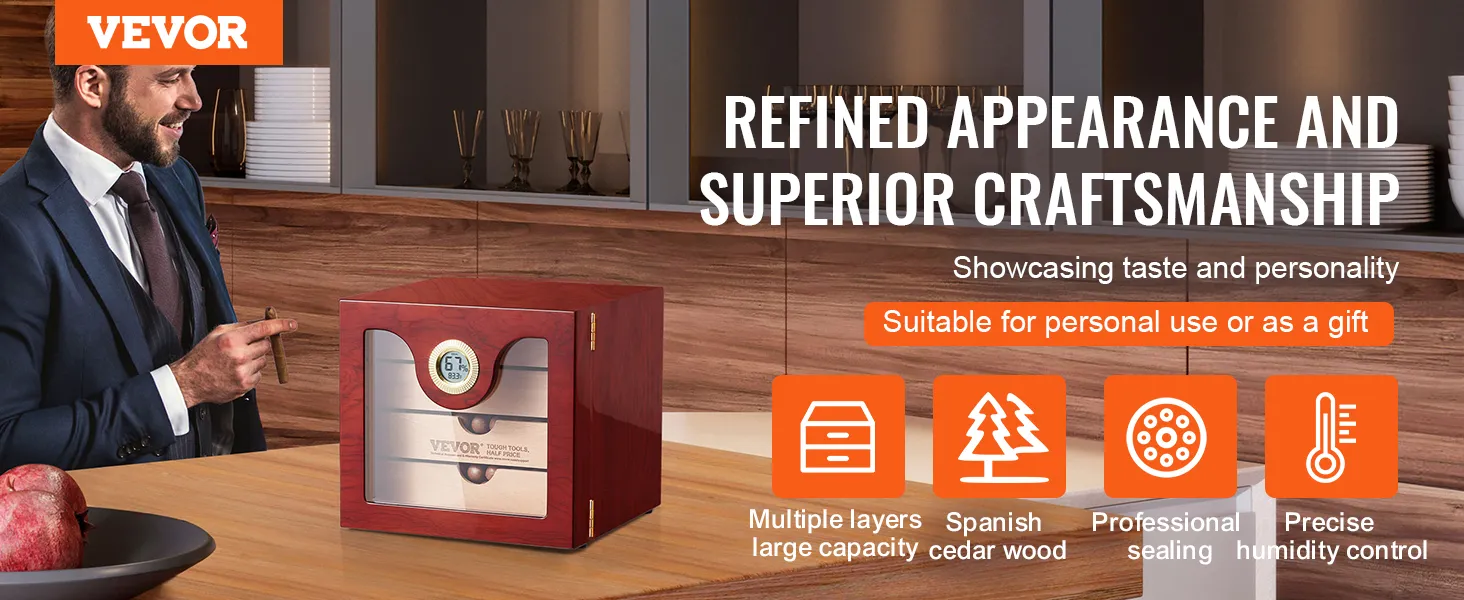 This 100 cigar humidor is the perfect gift for anyone who loves cigars. Give it to casual smokers, cigar lovers, or on special occasions. It's ideal for birthdays, retirements, anniversaries, and housewarming gifts. The elegant design and functionality make it a thoughtful gift. Show your appreciation with a gift that keeps cigars in top condition. The humidor is both practical and stylish. So, it’s an excellent choice for any cigar lover.