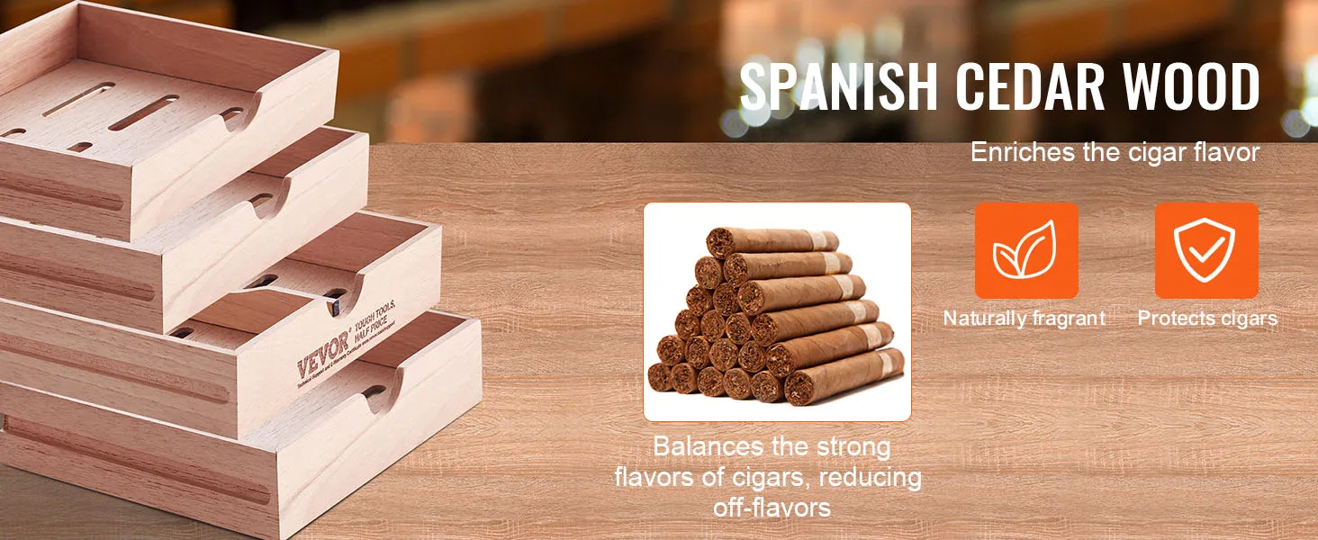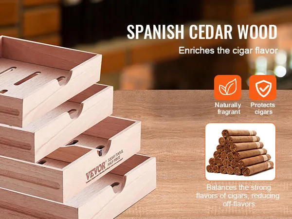 This cedar cigar box is crafted from high-quality Spanish cedar wood. It's made from premium Spanish Cedarwood, which is known for its stable moisture absorption properties. The Cedar Wood is famous for having the best humidity for cigars and improving their aging process.