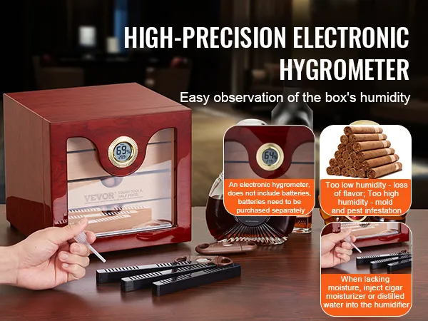 This is more reliable than regular thermometers. It helps you monitor the aging humidity of cigars inside the humidor. When moisture is low, add cigar humidifying solution or distilled water. This keeps humidity levels stable. You ensure better storage and fading of your cigarses in optimal conditions. The precise control helps maintain the ideal environment for your smokes! Enjoy cigar at their best with accurate humidity control.