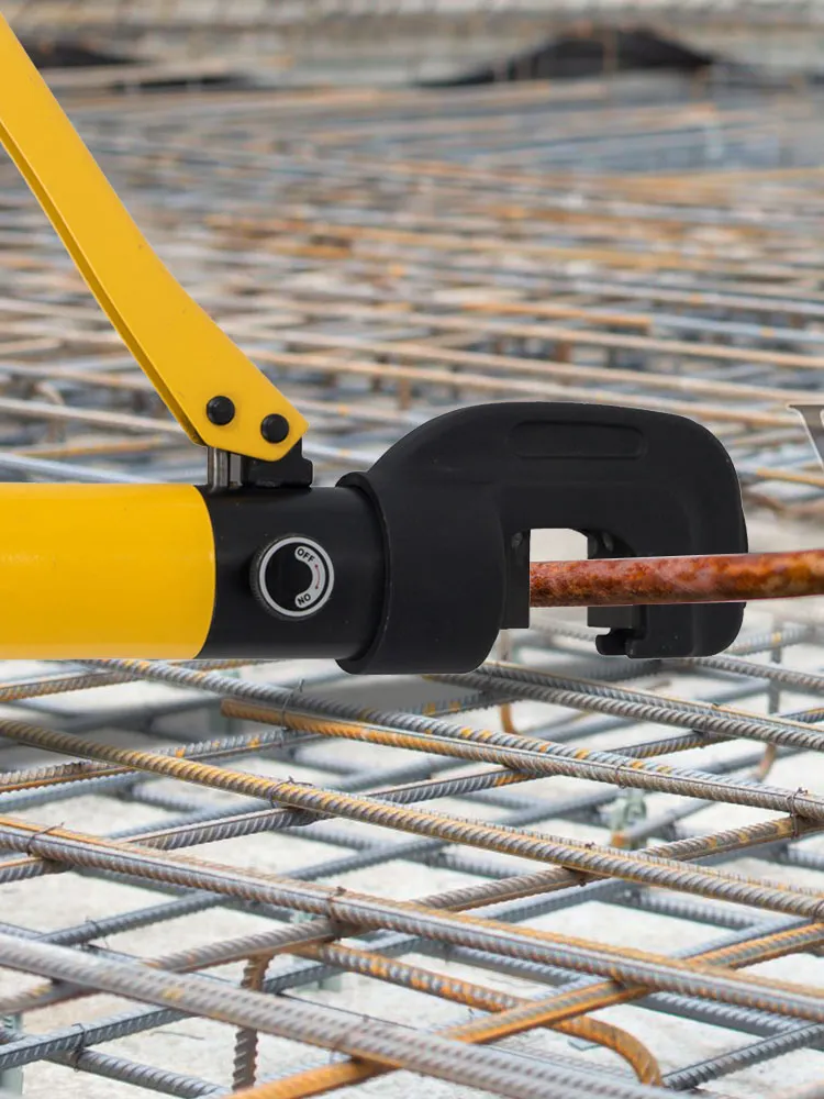The hydraulic rebar cutter is a versatile cutting tool that works on various materials up to 7/8 inch thick. It can easily handle rebar, bolt seals, and even steel chains. This versatility makes it an incredibly useful addition to any toolkit. You won't need multiple tools for different materials, as this one can do it all. Its ability to cut different types of materials allows it to be used in many applications, from construction to metalworking. With this tool, you will have the flexibility to tackle any cutting job.