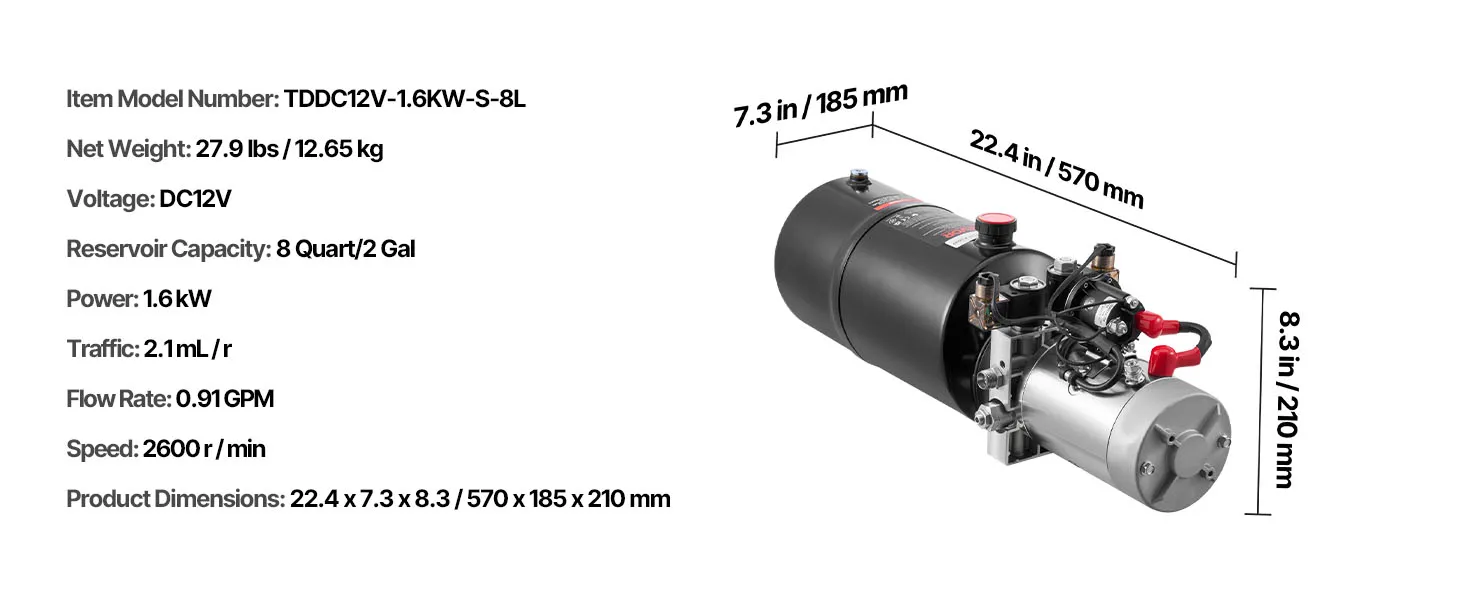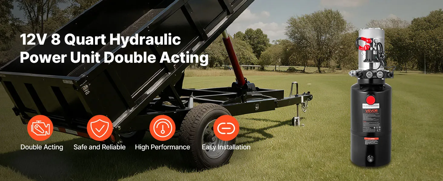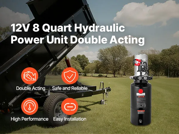 VEVOR 8 L Hydraulic Power Unit, Double Acting Dump Trailer Pump, 22 MPa Max Relief Pressure & 3.4 L/min Flow Rate, DC 12V Hydraulic Pump with Metal Reservoir for Dump Trailer Car Lifting