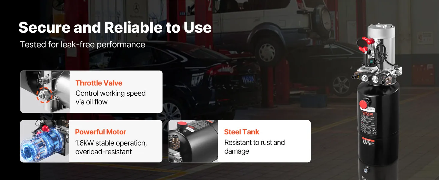 Heavy-Duty & Reliable: This dump trailer hydraulic pump seals tight to resist leaks, and the rust-resistant steel tank shrugs off daily bumps, so your hydraulic system stays tough and ready for long-term use