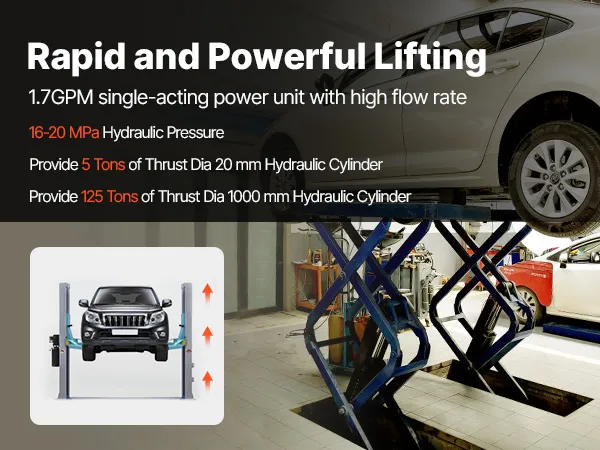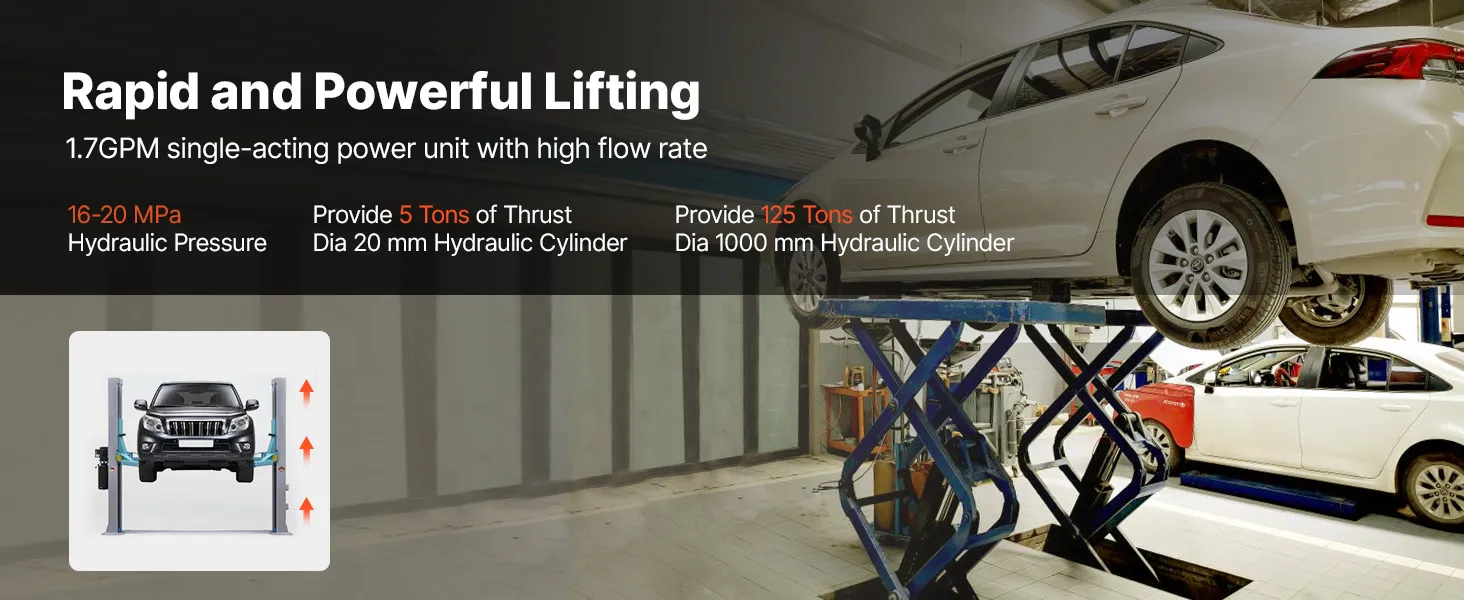 Quick Lifting: Equipped with a single-acting power unit, the hydraulic power unit offers smooth and reliable lifting, with gravity-assisted lowering and an automatic security overflow valve for added reliability and security