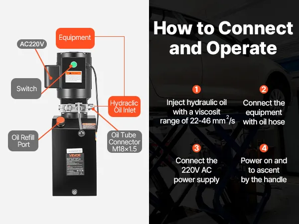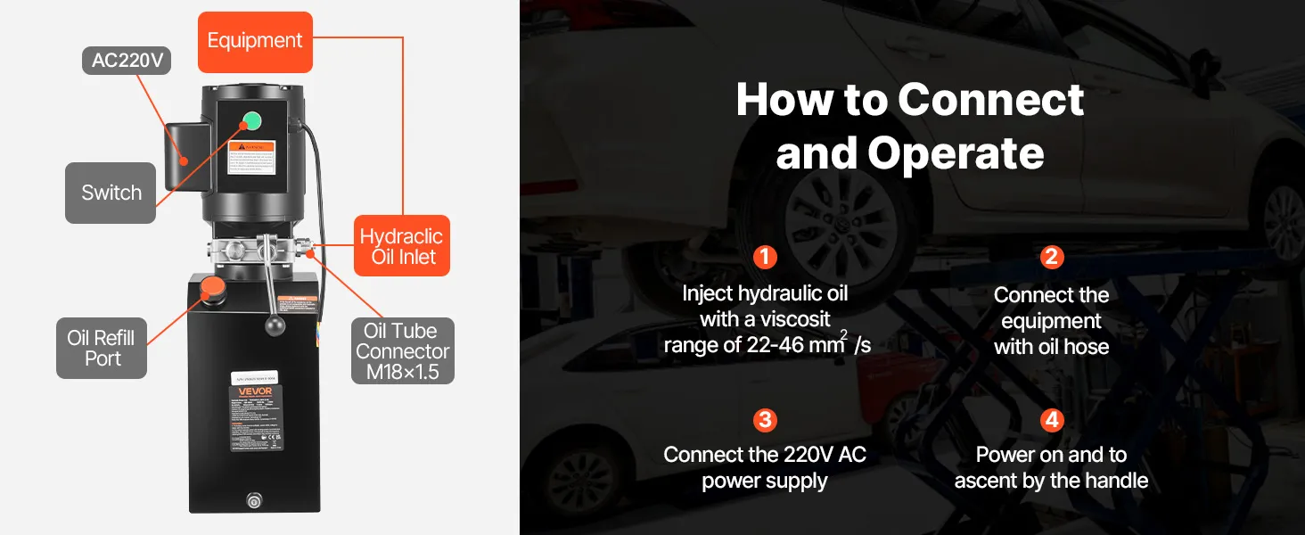 Versatile Compatibility: Ideal for use with automotive lifts, scissor lifts, semi-electric stackers, and more. This electric hydraulic pump is a must-have for automotive repair shops and mechanics