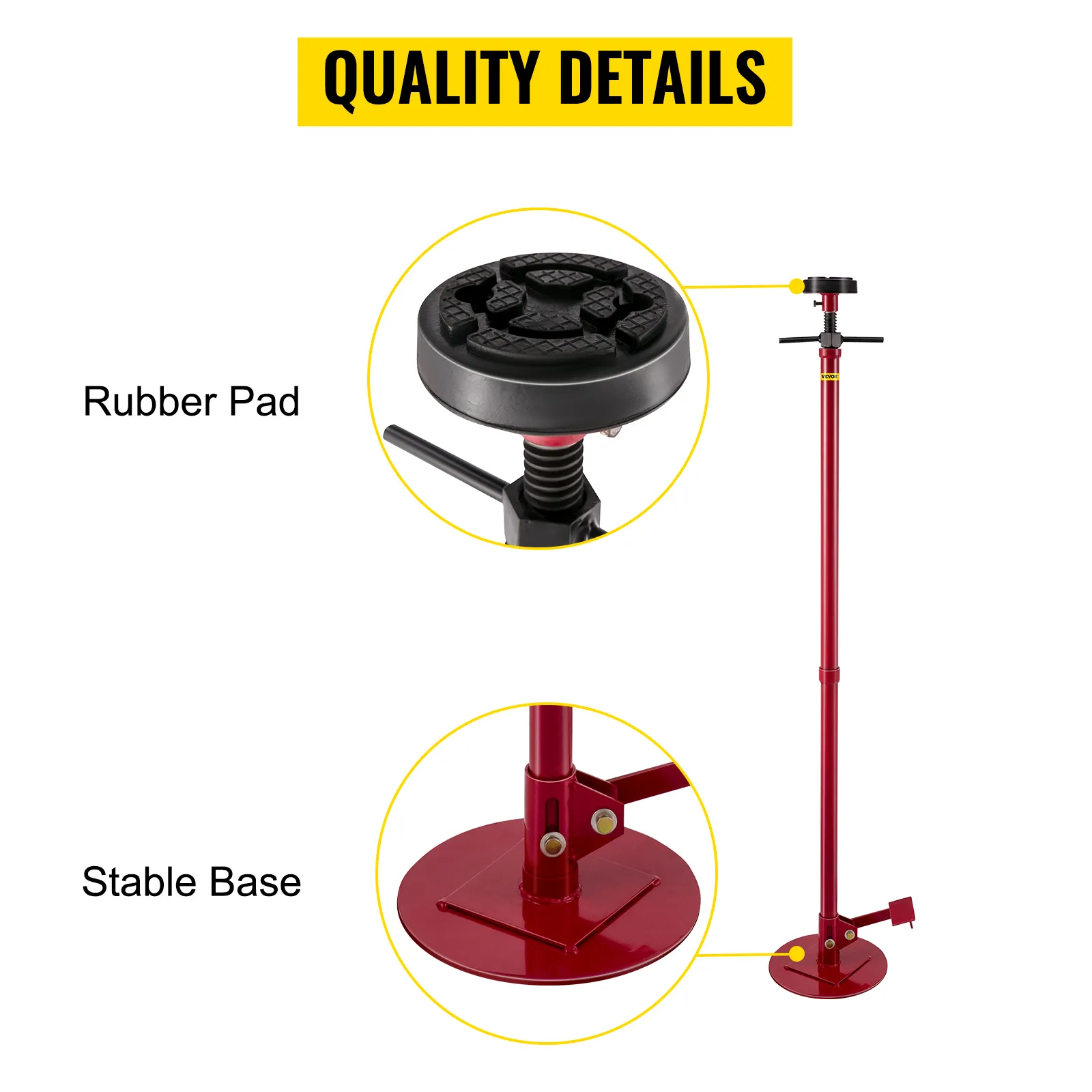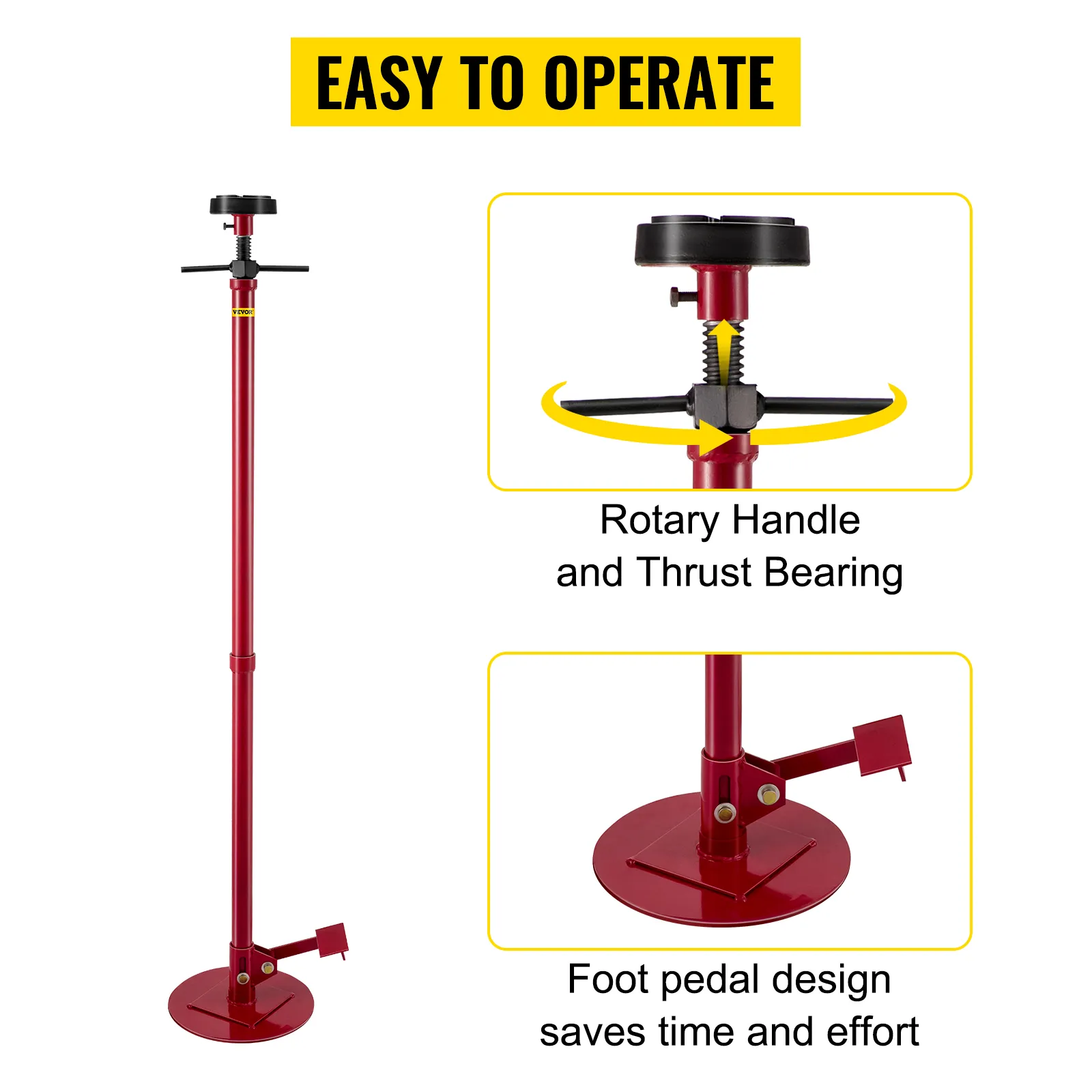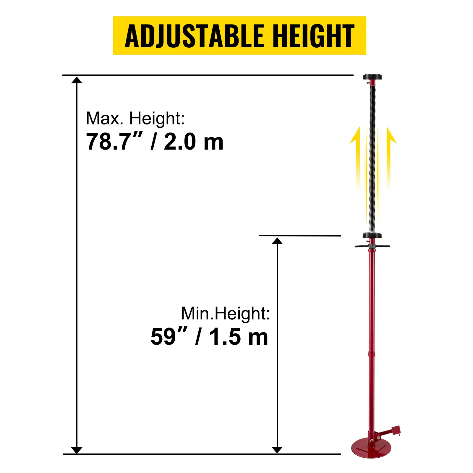 With a 59 in to 78.4 in lift range, the spin handle and foot pedal of this pole jack stand can give you smooth turning when adjusting the height under the load.
