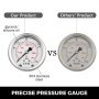 Maximum working pressure 0-400Bar/5800PSI/40mpa. Inner liquid is silicone oil/glycerol, which will not turn to yellow. 304 Stainless steel shell is durable with good resistance to corrosion and rust. Clear and accurate scale.