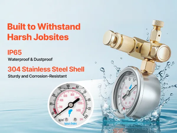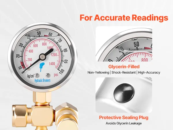 Reliable Accuracy: Our hydraulic pressure gauge kit features glycerin-filled gauges that resist leakage, avoid yellowing, reduce internal friction, and dampen vibration. 304 stainless steel housing ensures strength, heat, and corrosion resistance