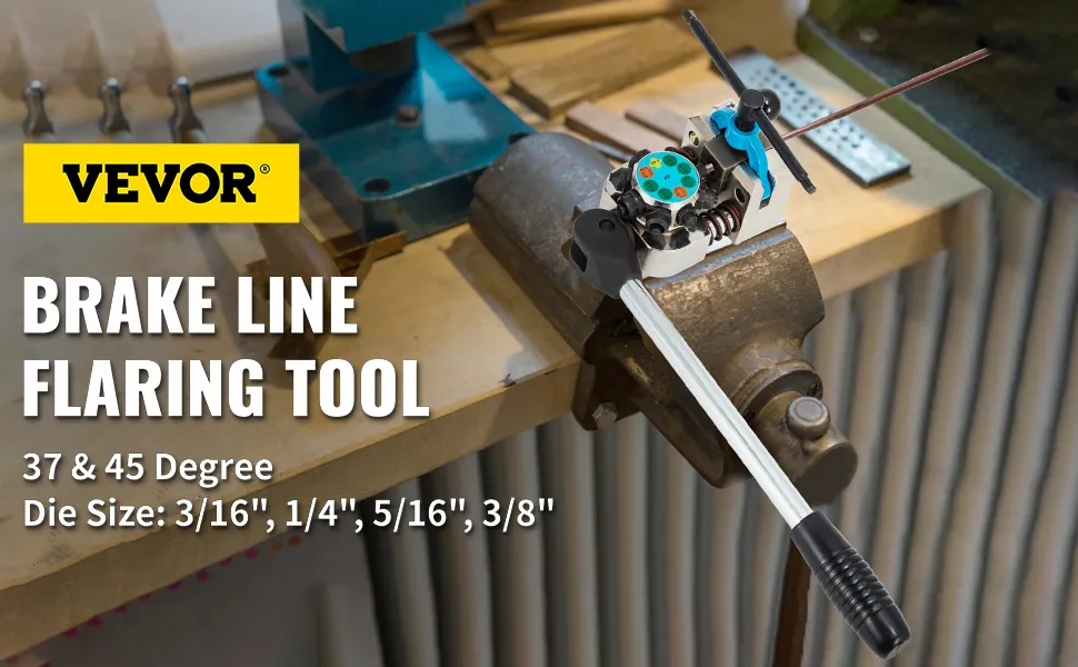 The brake line flaring tool allows you to achieve 37 degrees and 45 degrees of high precision with double, single, and bubble flares ranging from 4 sizes of tubing, 3/16 inch, 1/4 inch, 5/16 inch, and 3/8 inch.
