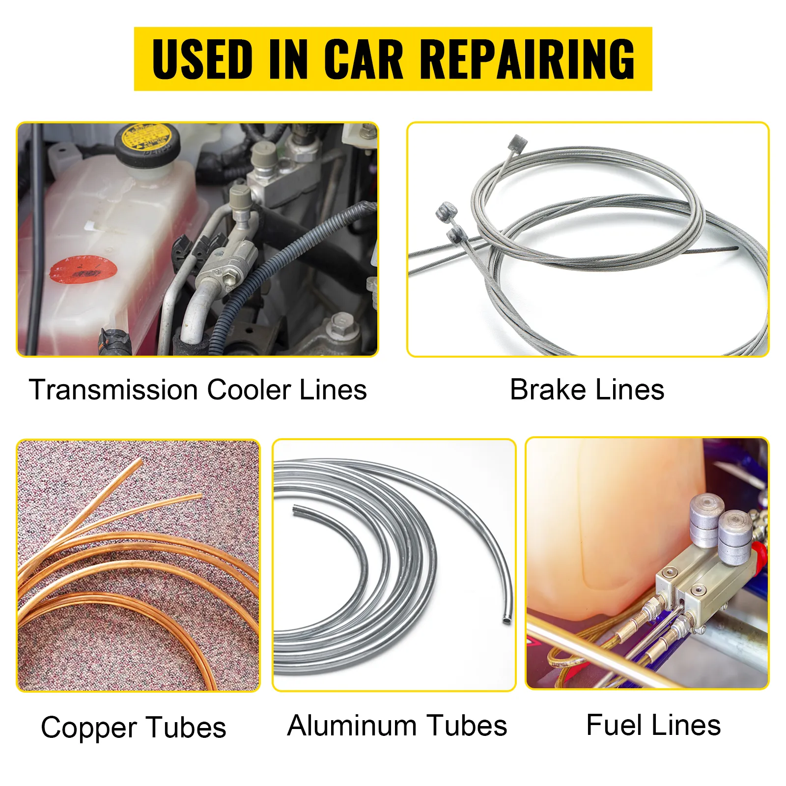 The double flare brake tool is applicable for soft metal tubes, including copper and aluminum. It is widely used in brake lines, fuel lines, and transmission cooler lines in vehicle repairs.