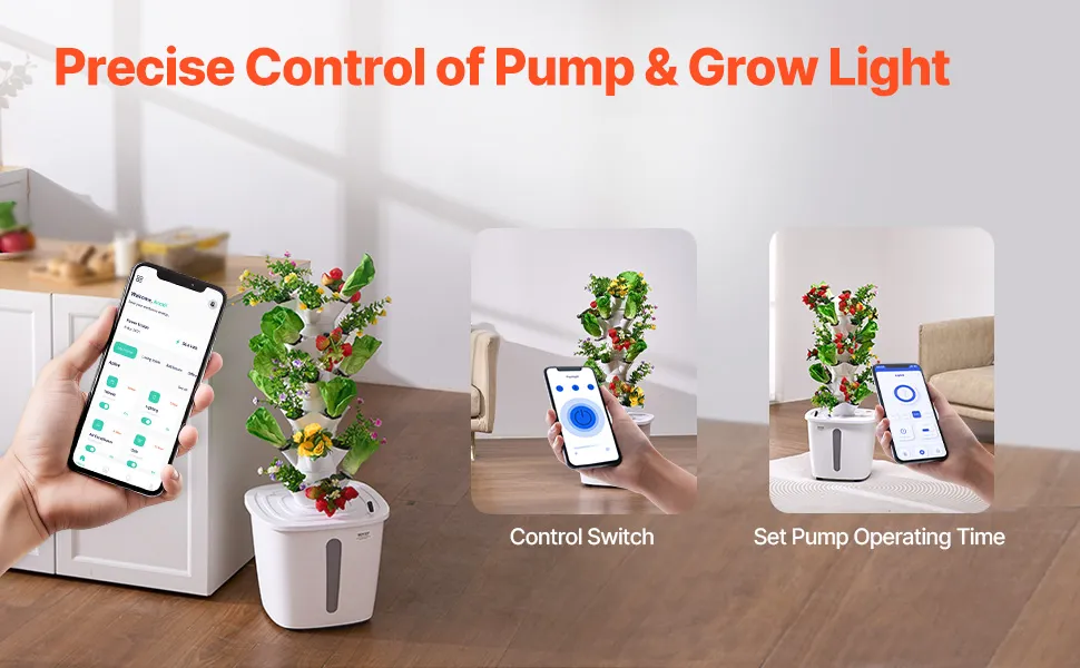 With a flow rate of 600L/H, this hydroponic tower provides ample oxygen to plant roots, promoting healthy growth. The 2m/6.56ft lift height ensures even water distribution to every planting pod, helping plants thrive in an oxygen-rich environment.