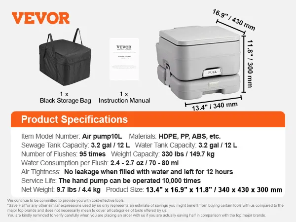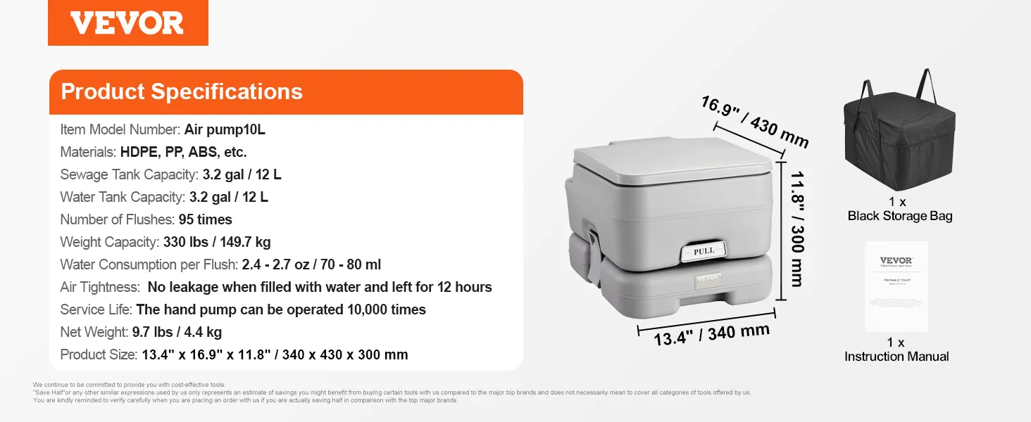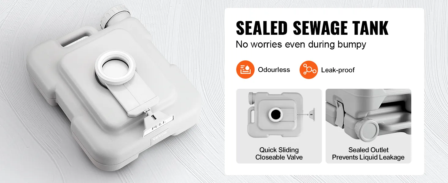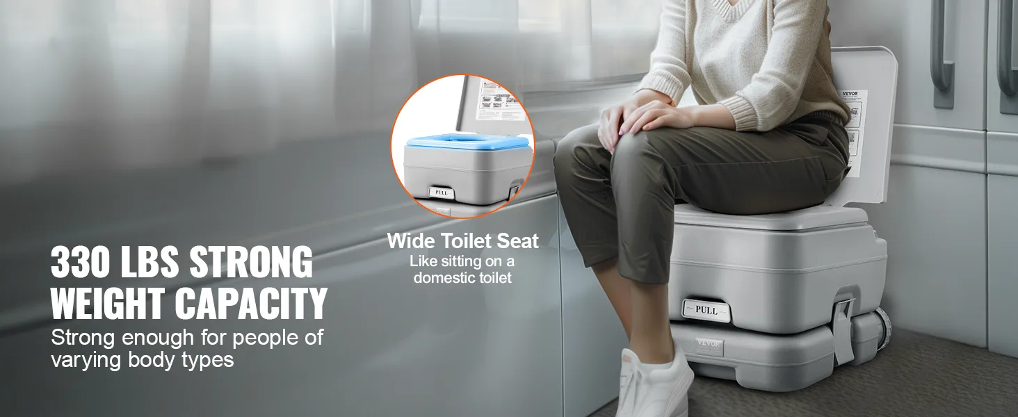 The VEVOR portable toilet is made with strong materials like HDPE and ABs. This construction ensures durability and long-lasting use. The leak-proof design adds to its reliability. You can trust that it won't leak, even when filled with water for extended periods. That means it’s safe and hygienic for use in any environment. The strong build can support up to 330 lbs, guaranteeing stability. Built to handle the rigors of outdoor use without compromising performance. Its solid construction makes it a reliable choice for camping and travel.