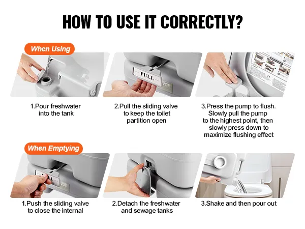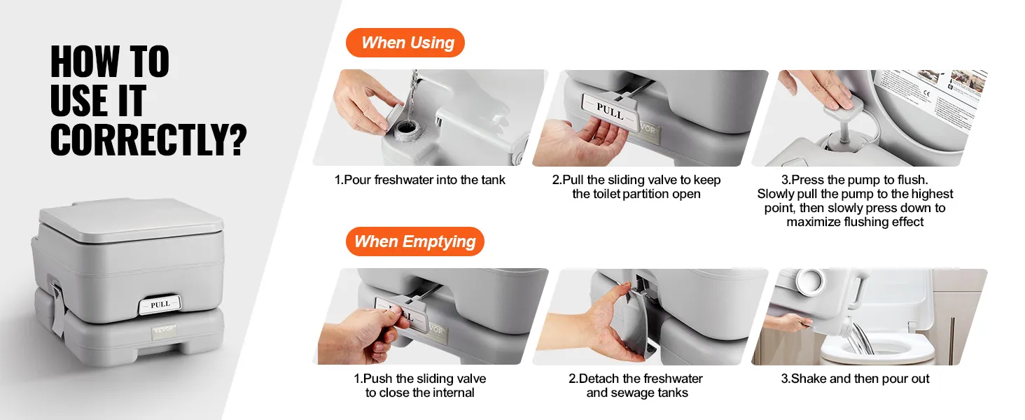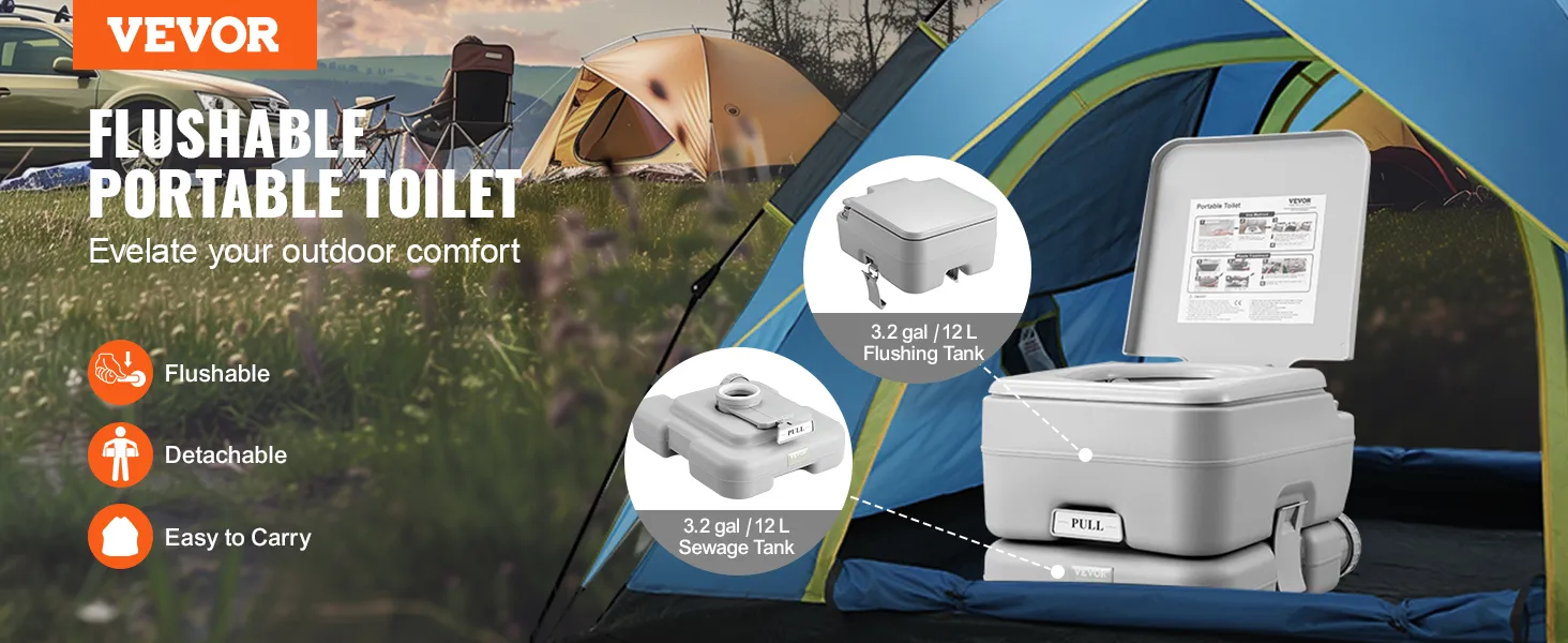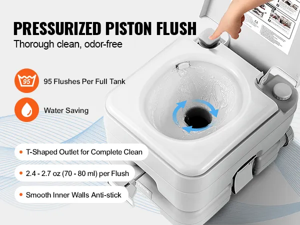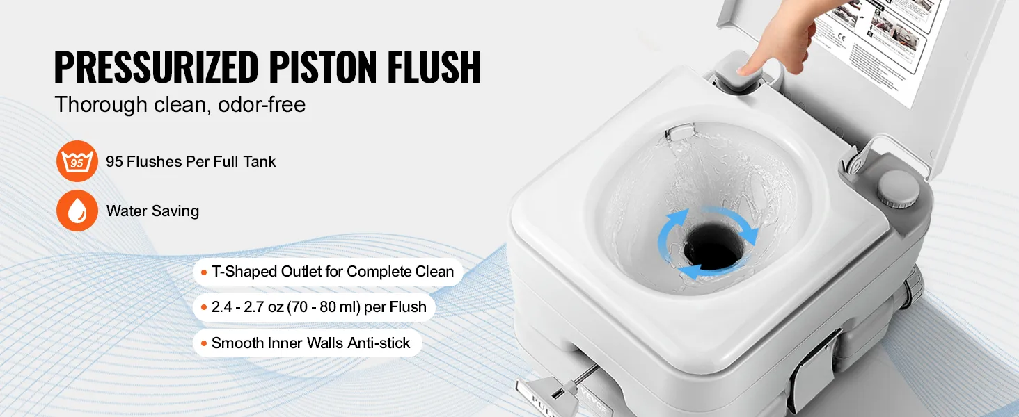 It is easy to use this toilet because of the push-button pressurized flush system. You simply press the button to activate the flush, which ensures a strong and effective flush every time. The pressurized mechanism helps keep the bowl clean and free from waste! This feature makes it particularly useful for maintaining hygiene in outdoor settings. Our system is efficient and reliable. So even kids can operate it easily. This adds to the convenience of using it while camping or traveling. It's designed to provide a pleasant and comfortable experience, especially in remote locations.