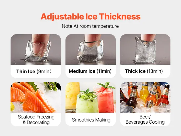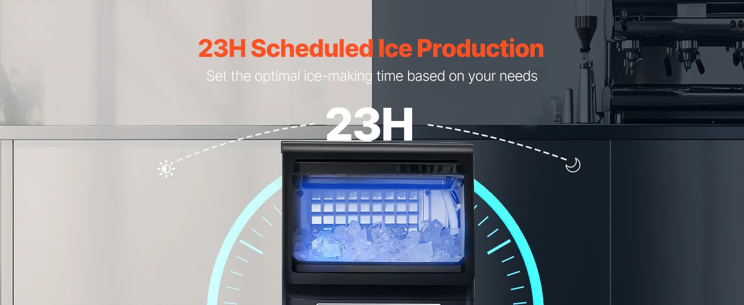 Efficient & Quiet Ice Production: Our powerful compressor can produce ice cubes in as little as 12-15 minutes (depending on the ice thickness). What's more, it operates quietly, creating a comfortable environment without disrupting the peace