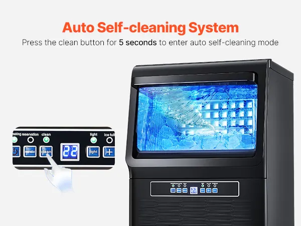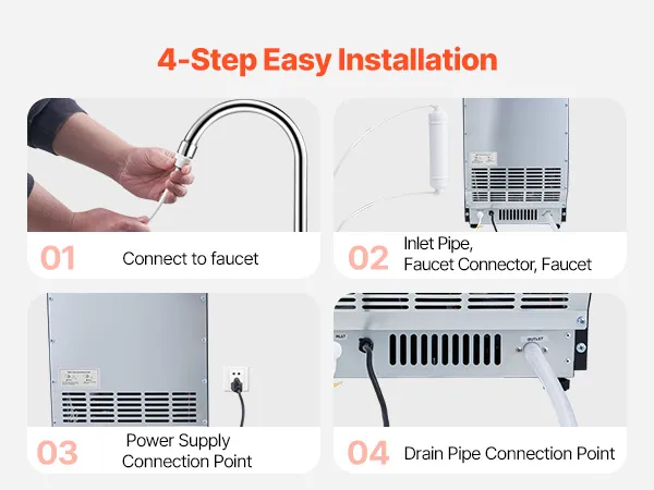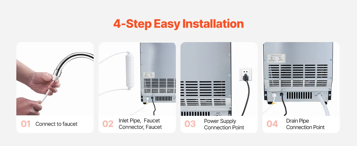 Filter & Auto Cleaning: Our ice maker comes with a self-cleaning function and a supplied water filter in the inlet pipe. Say goodbye to worries about impurities in your ice. It ensures that only pure, clean water is used